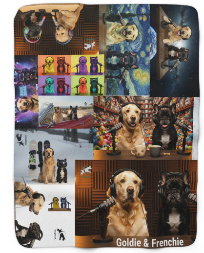 Goldie & Frenchie Sherpa Fleece Blanket — Warhol Inspired Pop Art
