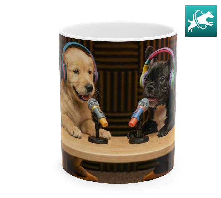 Goldie & Frenchie Chatting Ceramic Mug, (11oz, 15oz)