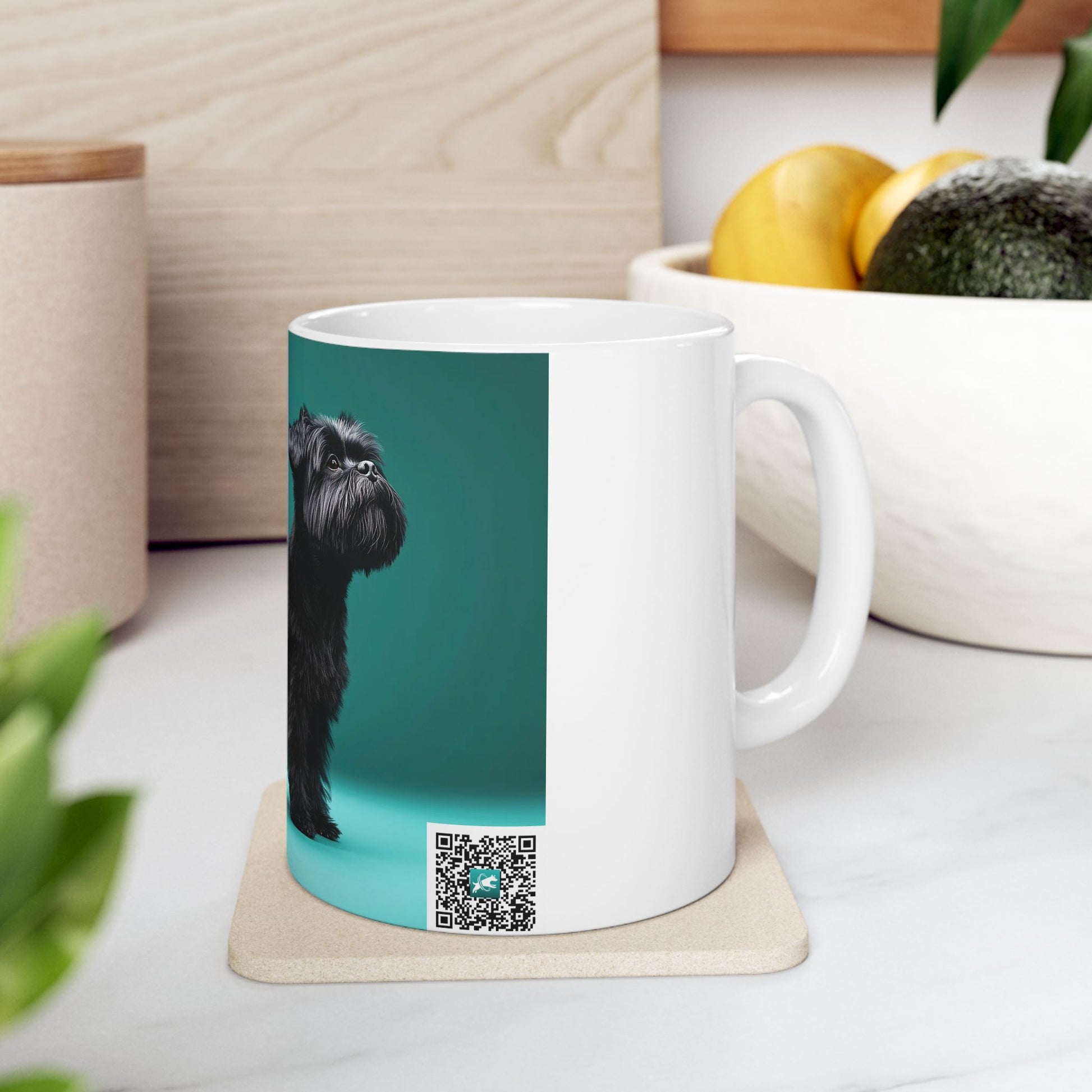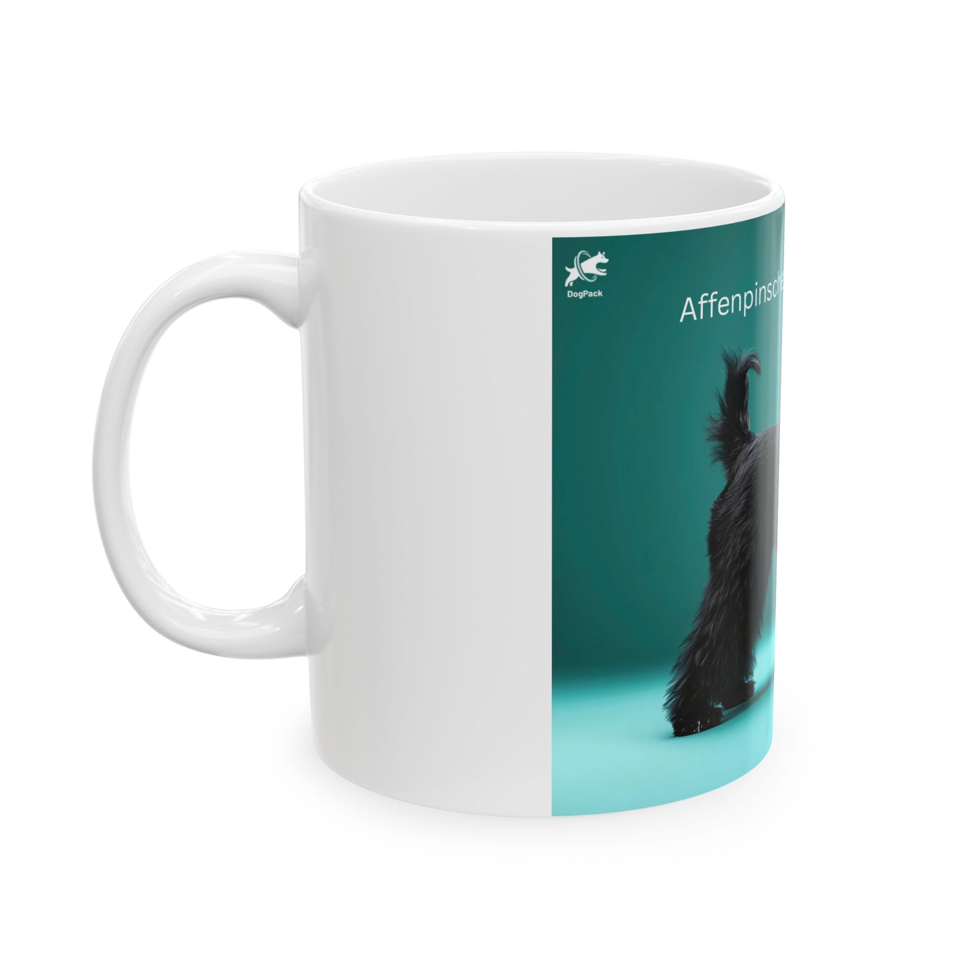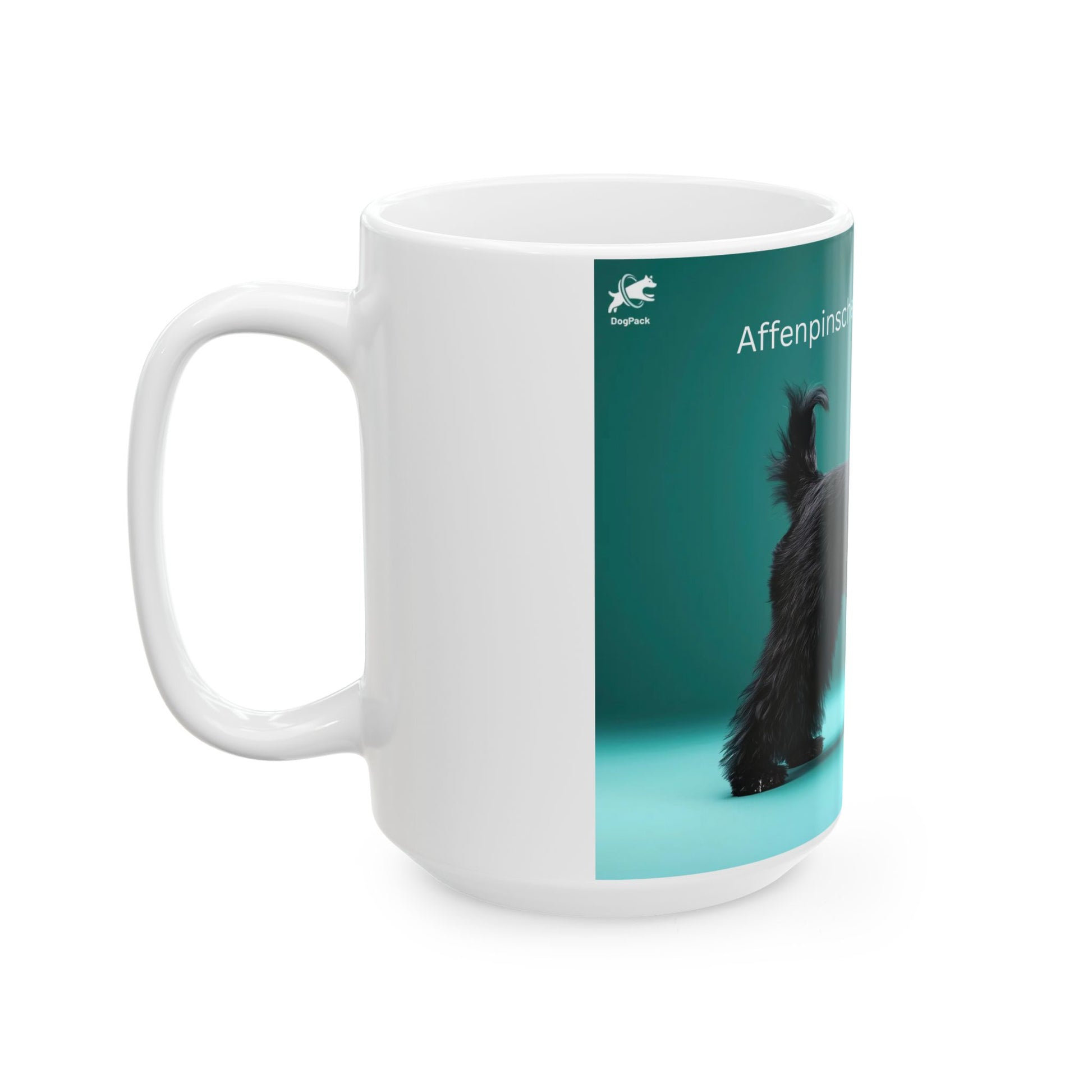 Bright mornings start here. This glossy ceramic mug features a proud Affenpinscher rendered in vibrant, high-definition color against a jewel-green gradient — a little portrait session for the dog that rules your heart. The image wraps cleanly around the mug so the figure stands out from every angle. It feels solid in your hands thanks to the classic C-handle and shiny finish, and it’s built for everyday use: warm a cup of coffee in the microwave, toss it in the dishwasher, and drink with confidence knowing the ceramic is lead- and BPA-free. Use the smaller 11 oz for a concentrated morning pick-me-up, or choose the 15 oz when you need an extra pour to fuel long walks and training sessions.