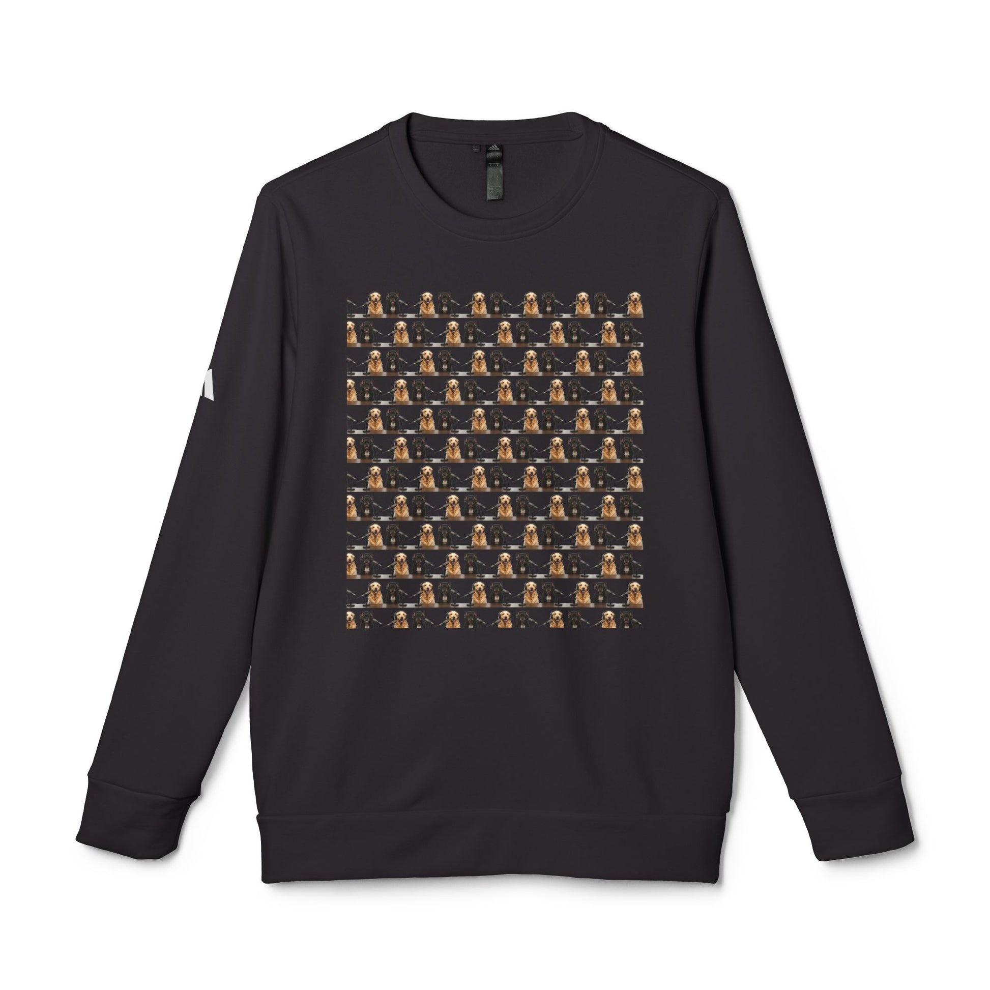 The front features a repeating photo-grid artwork for a playful, graphic look, while the back showcases Goldie & Frenchie at the mic — a bold nod to the podcast, finished with a subtle DogPack logo above and a caption bar below. Printed using Direct-to-Film technology, the artwork stays crisp and durable through regular wear. A contrast adidas logo on the sleeve and sewn-in labels add authentic athletic styling without overpowering the design.