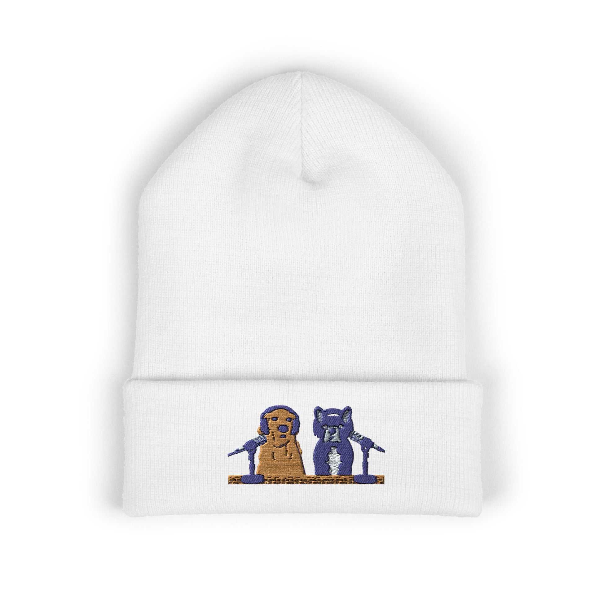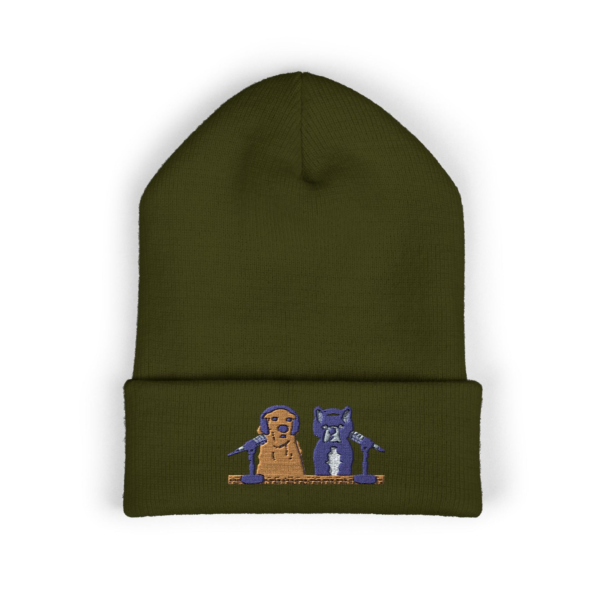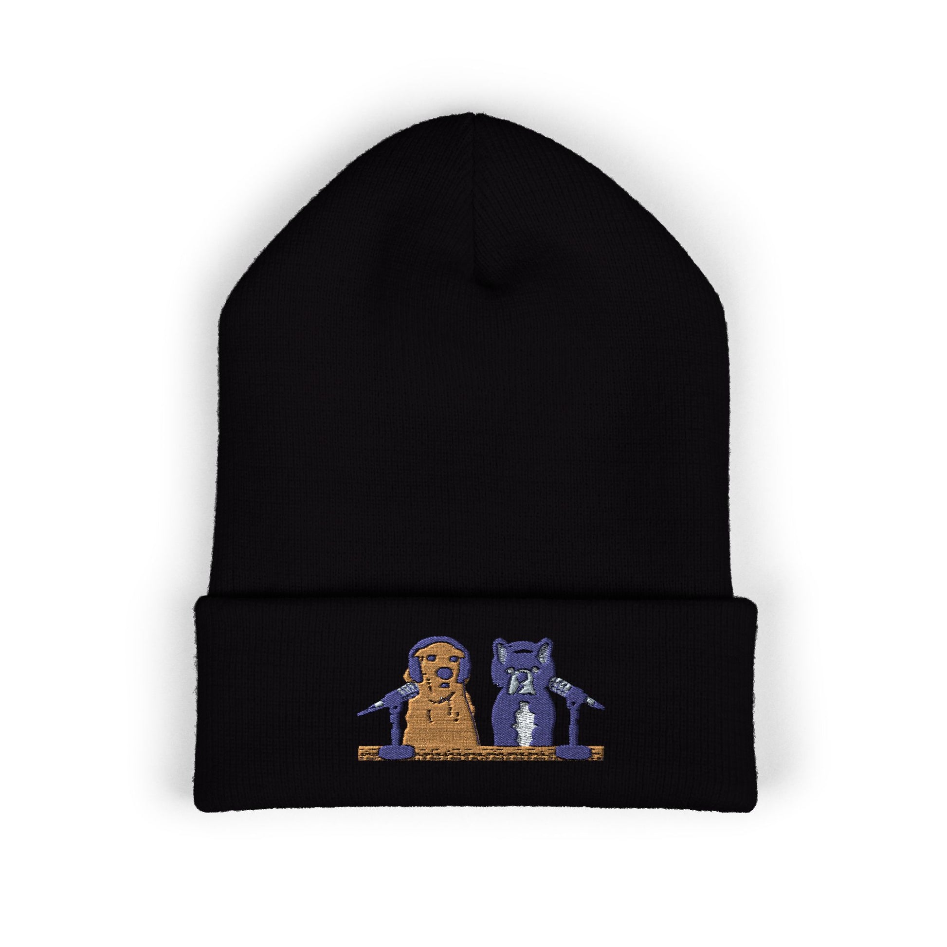 This cozy cuffed beanie brings subtle personality to cold-weather days with a clean embroidered patch of Goldie & Frenchie—two tiny co-hosts stitched into the fold like a secret inside joke you carry everywhere. Soft, warm, and comfortably stretchy, it fits close without squeezing and holds its shape through everyday wear. The knit feels lightweight enough for indoor use yet insulating outdoors, making it the kind of hat you grab instinctively on your way out the door.