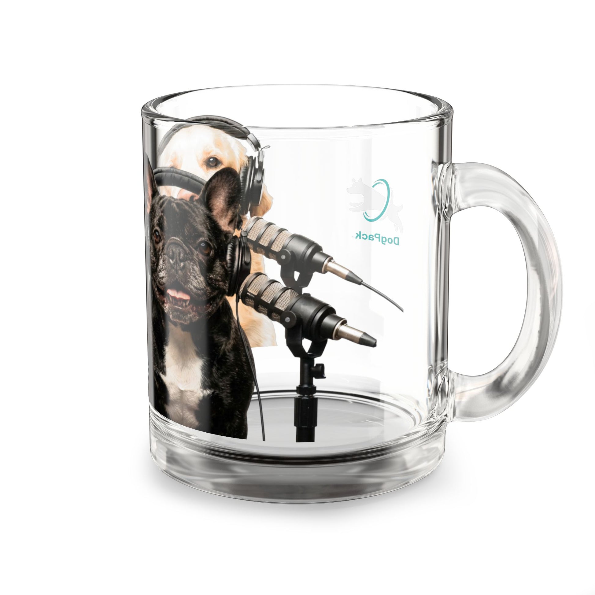 This 10oz clear glass mug adds a touch of charm to everyday moments, from morning coffee to late-night wind-downs. The transparent glass lets your drink shine while crisp, glossy artwork wraps the surface—featuring Goldie & Frenchie in headphones, mid-conversation at the mic. The rounded C-handle feels balanced and comfortable in hand, and the sturdy glass construction is built for regular use. Playful yet practical, it’s the kind of mug that makes each sip feel a little more personal, especially for dog lovers and fans of lighthearted design.