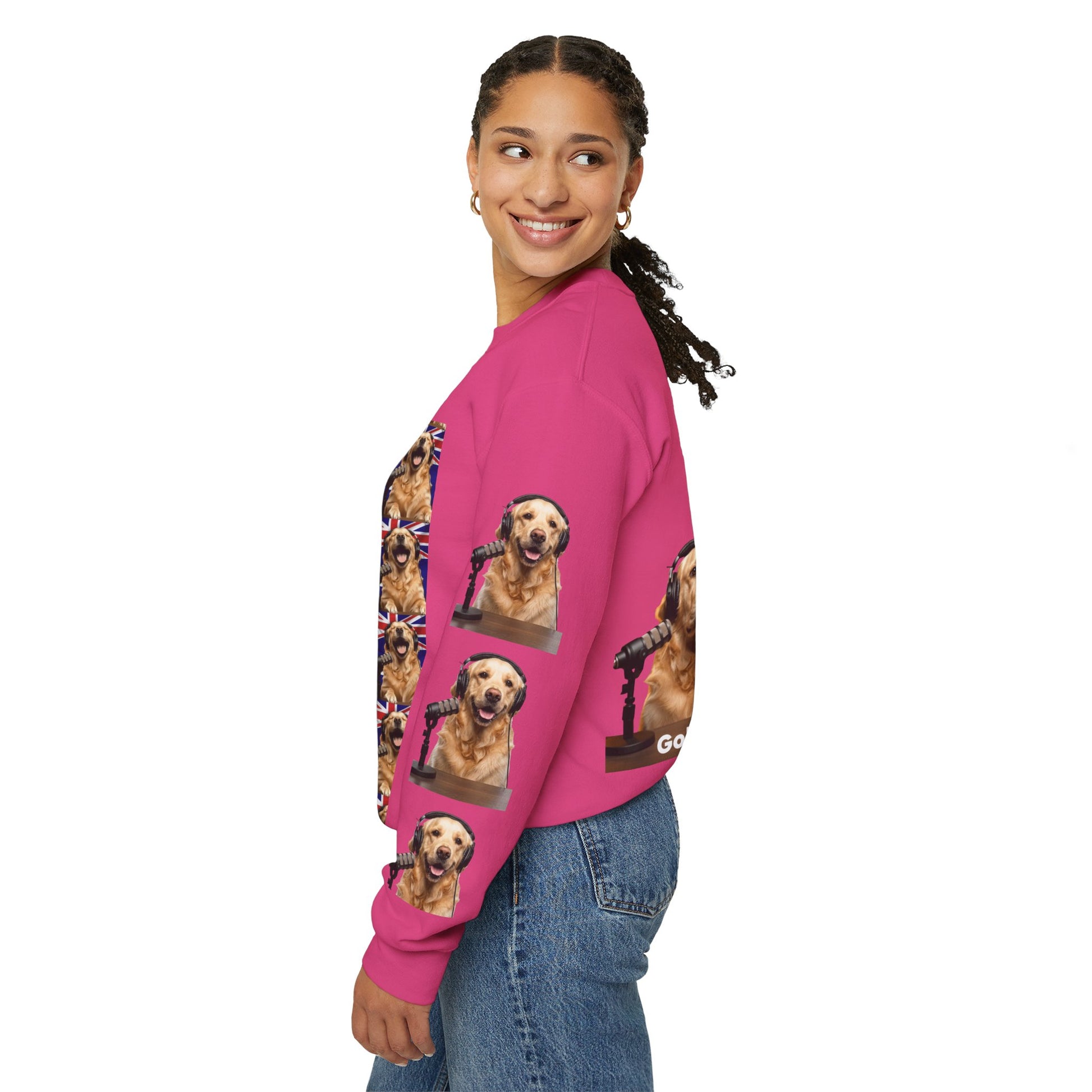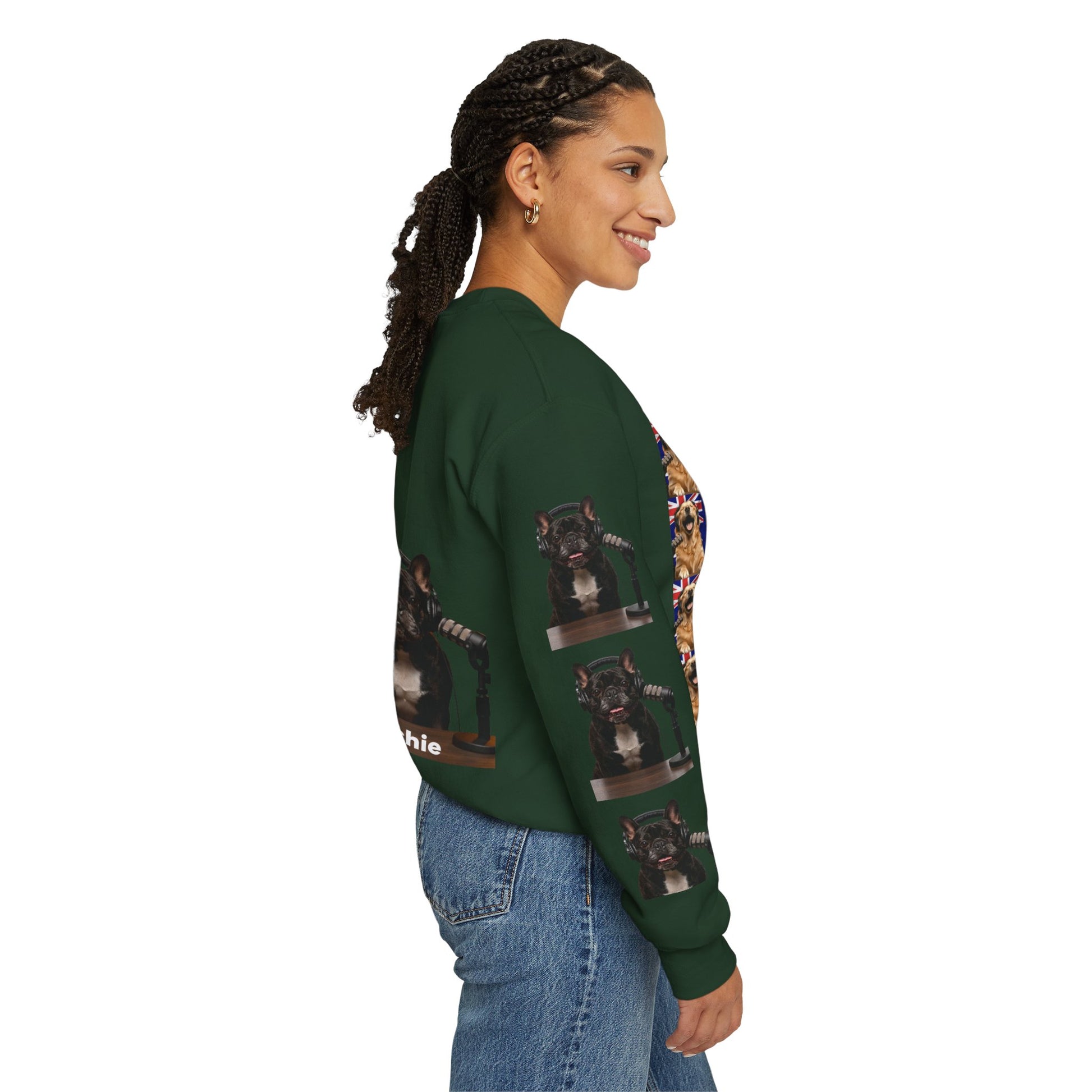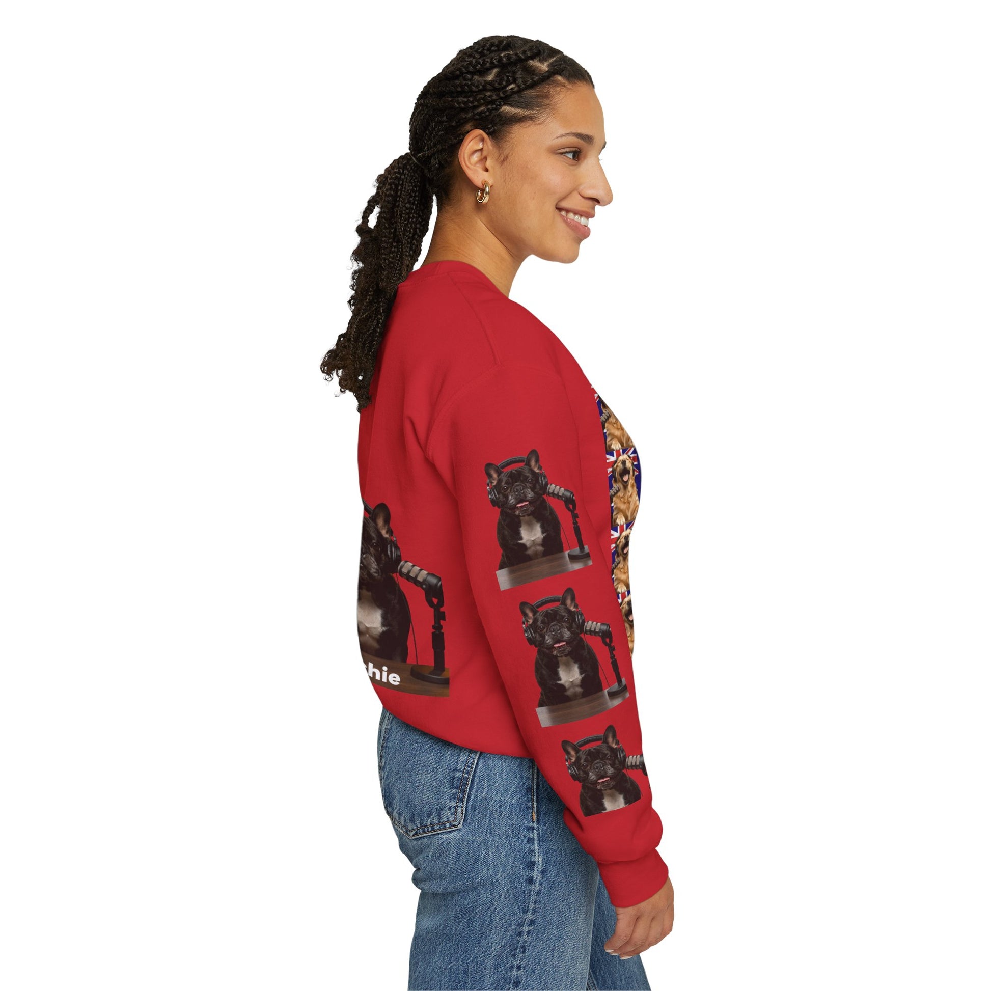 Celebrate Goldie & Frenchie with this special-edition crewneck designed for dog lovers who like their style cozy, playful, and full of personality. Featuring an all-over collage of Goldie and Frenchie across the front, this sweatshirt brings bold character without sacrificing everyday comfort. Subtle sleeve accents add an extra layer of detail, making it a standout piece whether you’re lounging at home, heading out for a walk, or gifting a fellow fan.