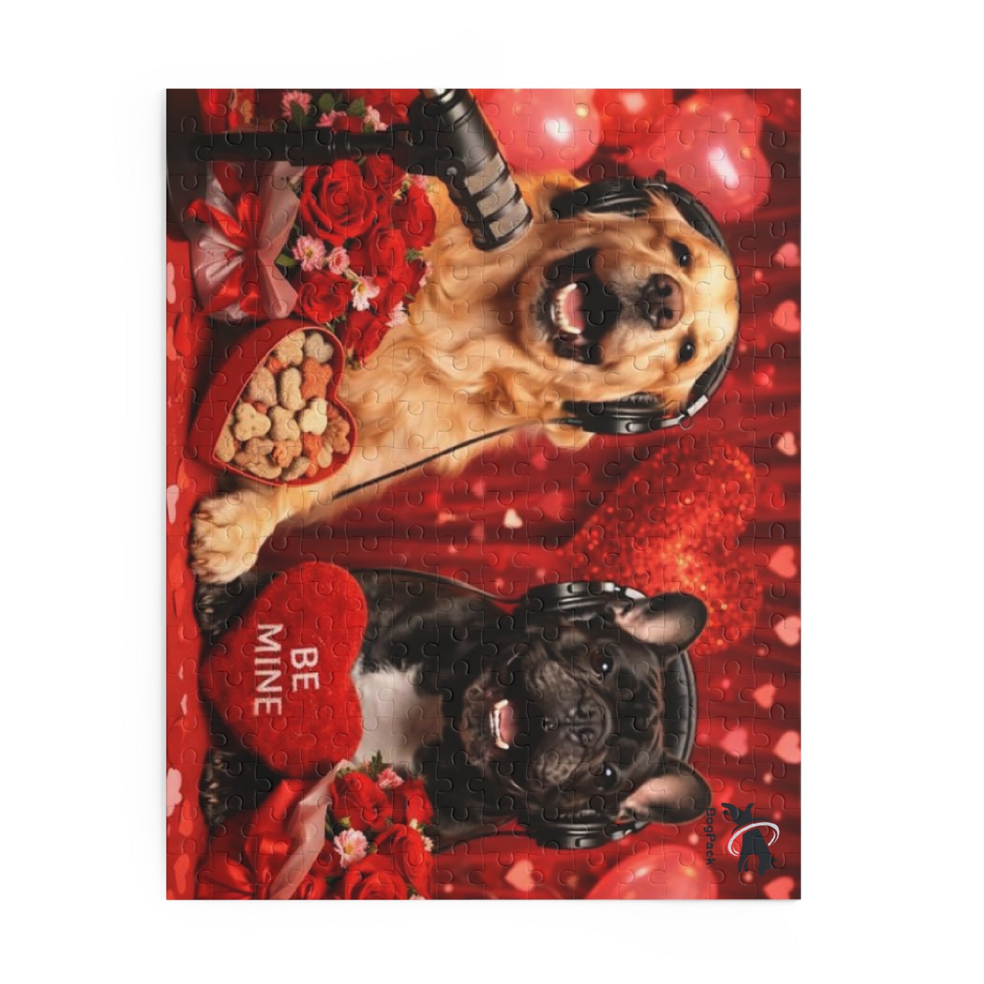 As the image comes together, the rich reds, soft lighting, and playful Valentine details create a final picture that feels both festive and heartwarming. It’s perfect for quiet evenings, date nights, family time, or gifting someone who loves DogPack and a little romance mixed with humor.