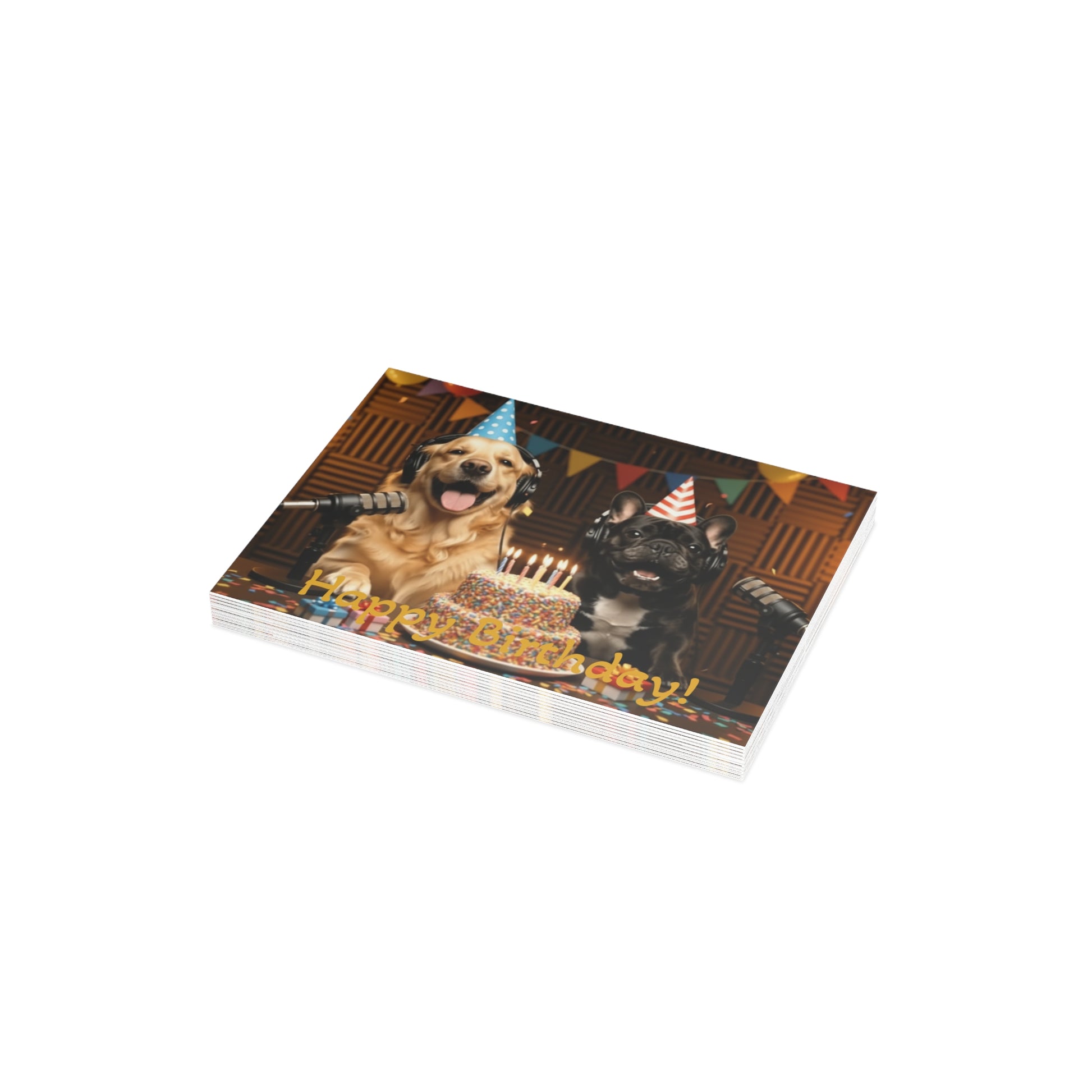 Available in 4 sizes and 4 paper finishes (matte, uncoated, one-side coat, two-side coat), these Goldie & Frenchie Birthday postcards are a perfect way to express your love to the dog lover in your life. You can be sure that they won't get this card from anyone else this year, your gift will be a truly personalized and unique experience. Available in bundles of 10, 30, and 50 pieces.