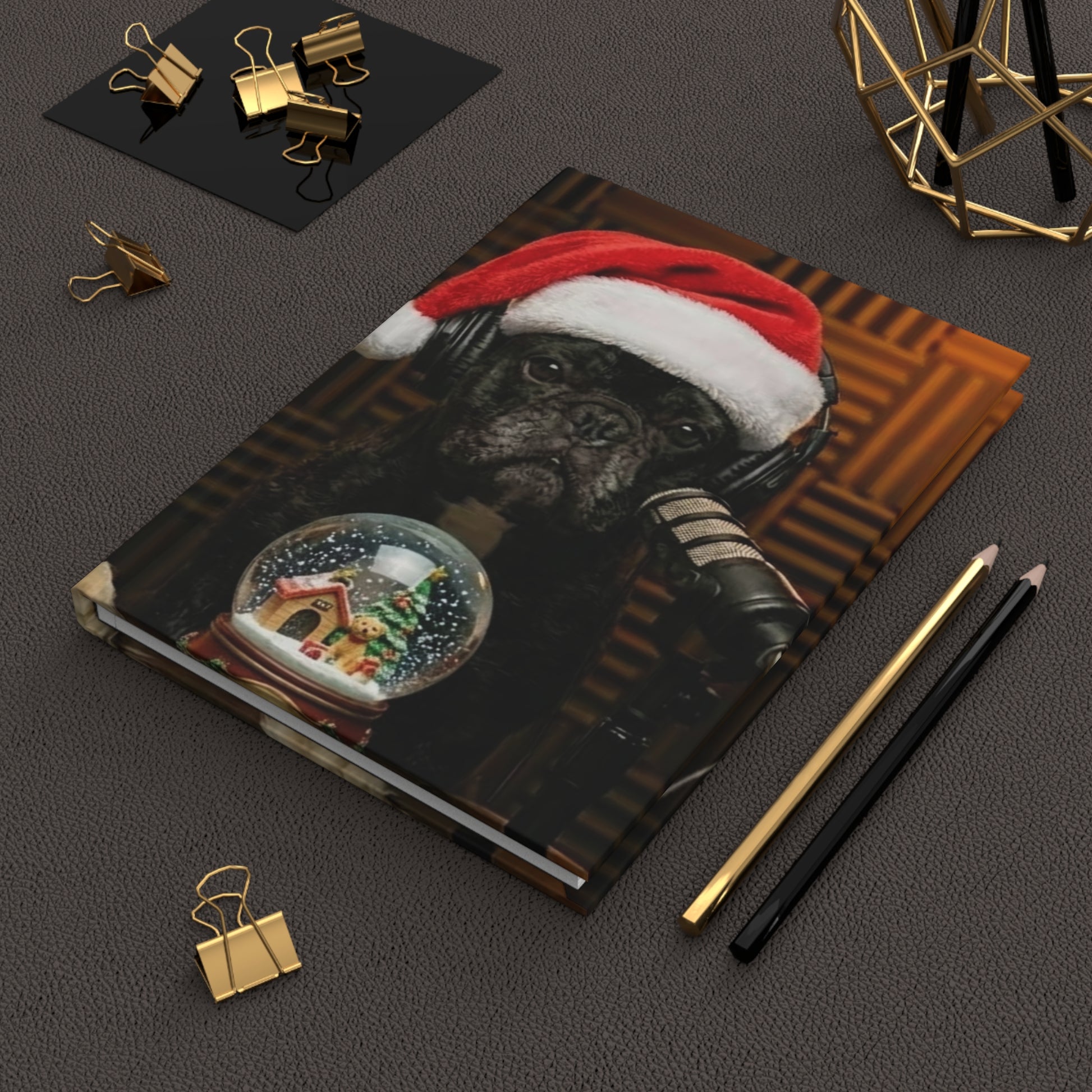Goldie & Frenchie Christmas Hardcover Journal — Festive Santa Hat & Sweater Notebook