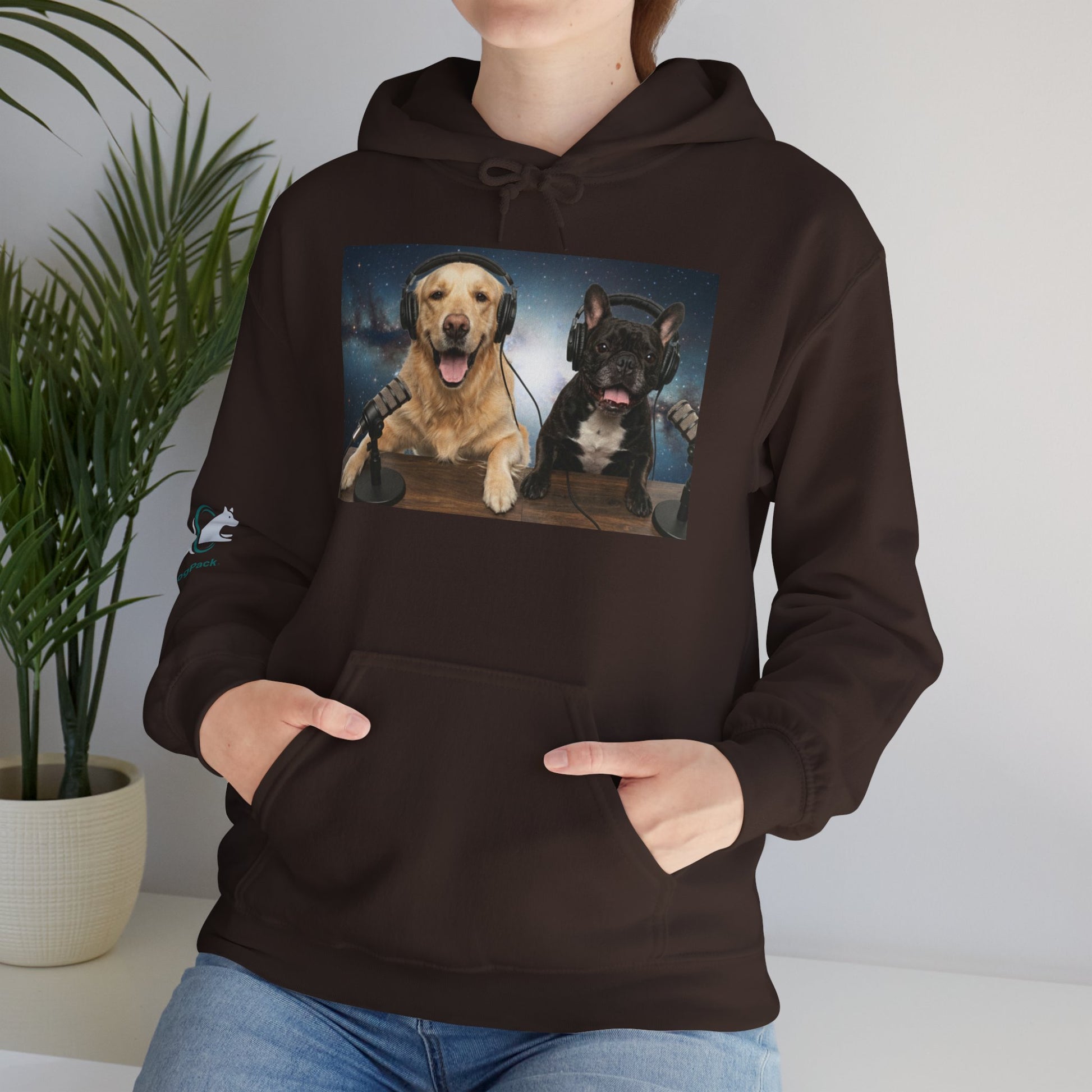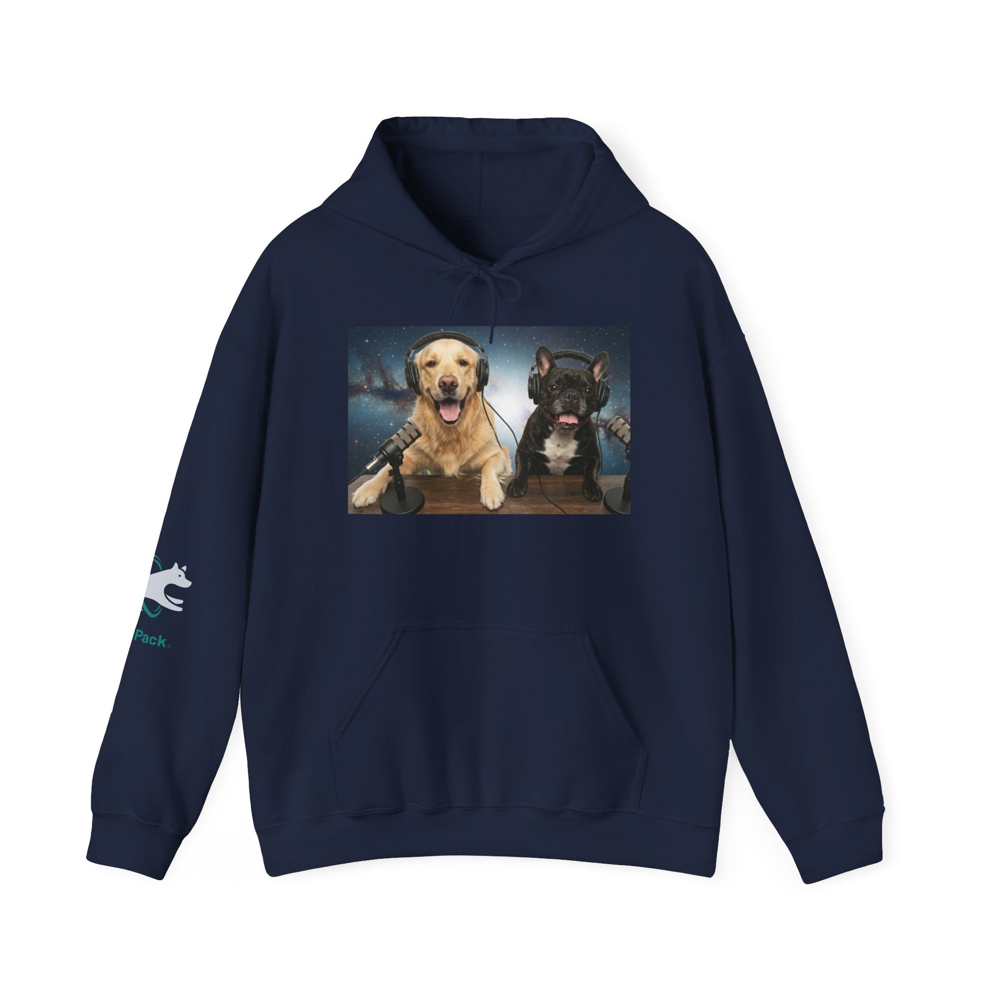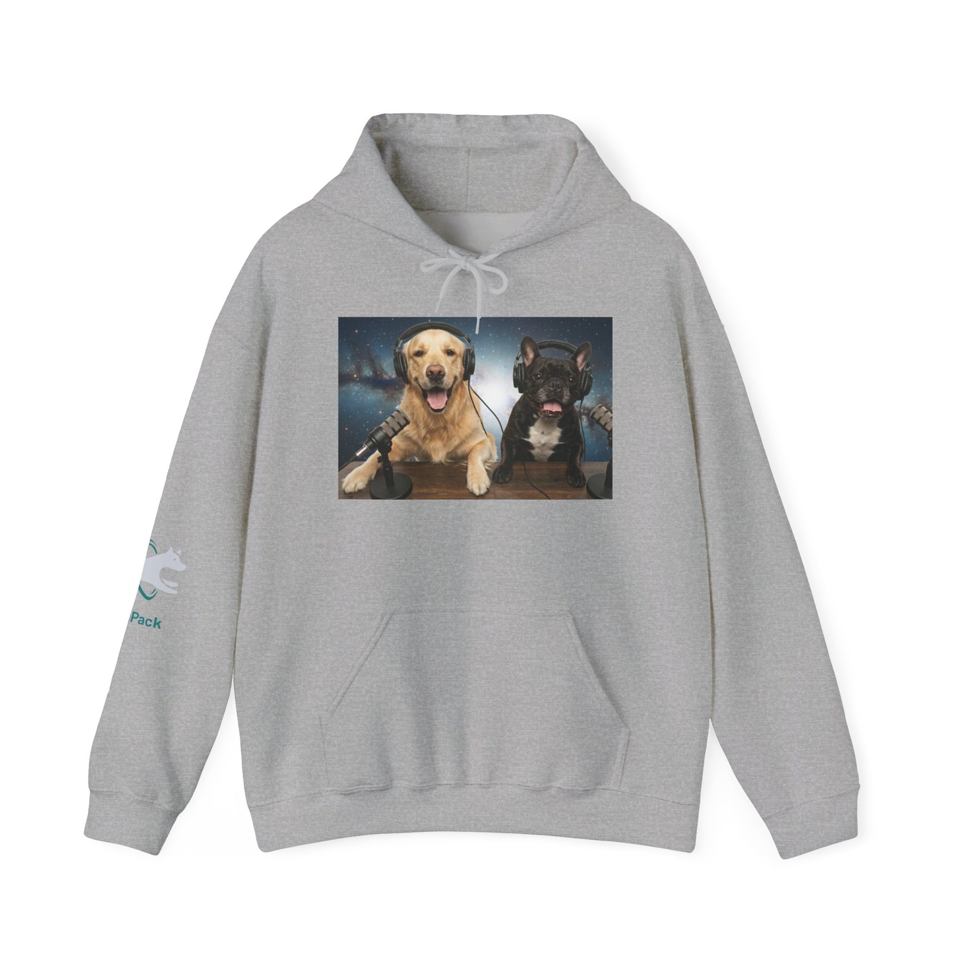 This cozy hoodie celebrates the charm of Goldie & Frenchie — two loyal, lovable co-hosts who bring joy to every episode. The front features a vibrant print of the boys at their podcast desk, headphones on, ready to share stories from across the galaxy. Soft mid-weight fabric wraps you in comfort, making it the perfect layer for evening walks, weekend coffees, or winding down on the couch. Subtle sleeve artwork adds personality without overpowering the design, letting Goldie & Frenchie stay the stars of the show.