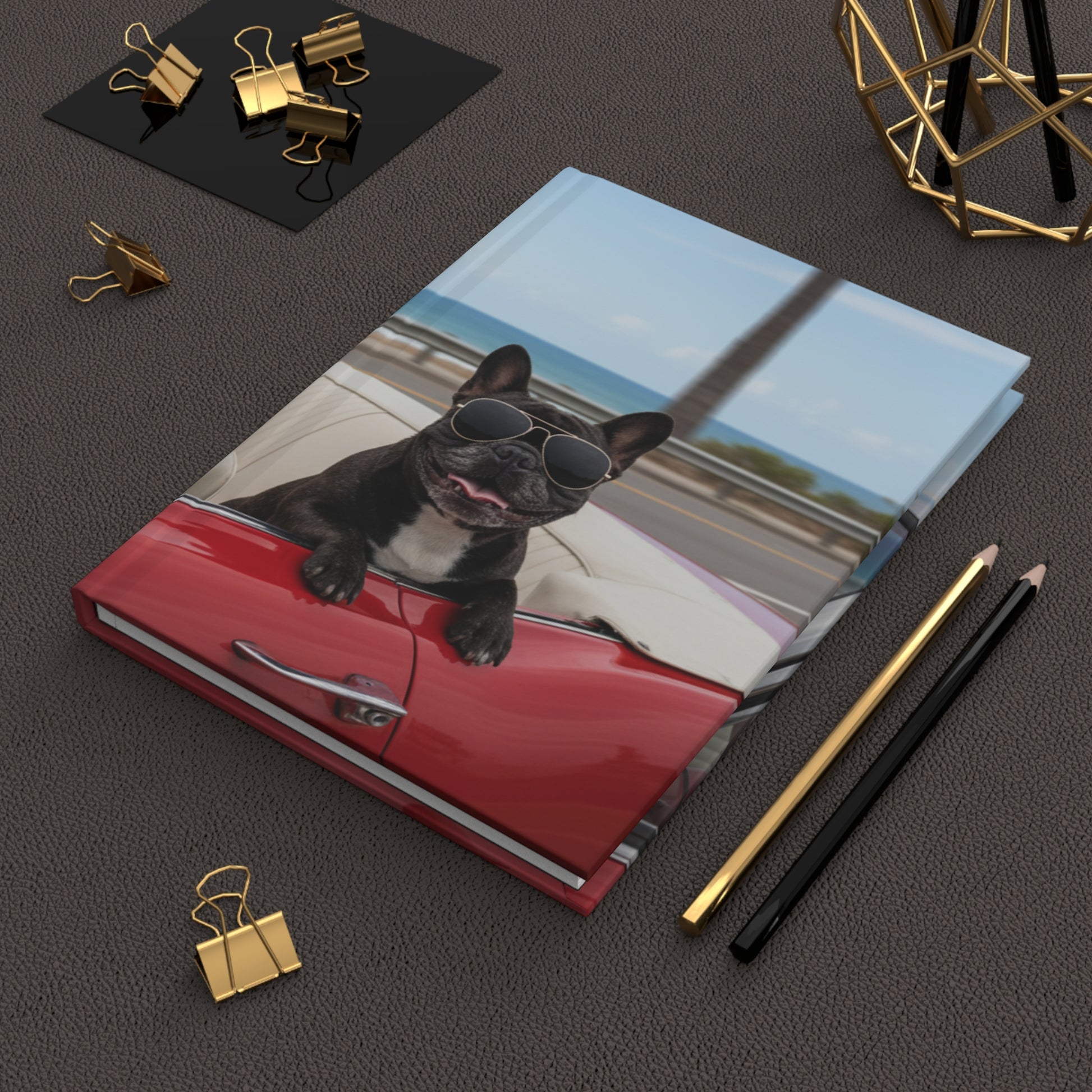 This hardcover journal captures the carefree feeling of a warm coastal drive — Goldie and Frenchie cruising with the top down, breeze in their fur, sunglasses on, and nothing but good energy ahead. The full-wrap cover prints in vivid color across front, spine, and back, turning every notebook session into a small escape.