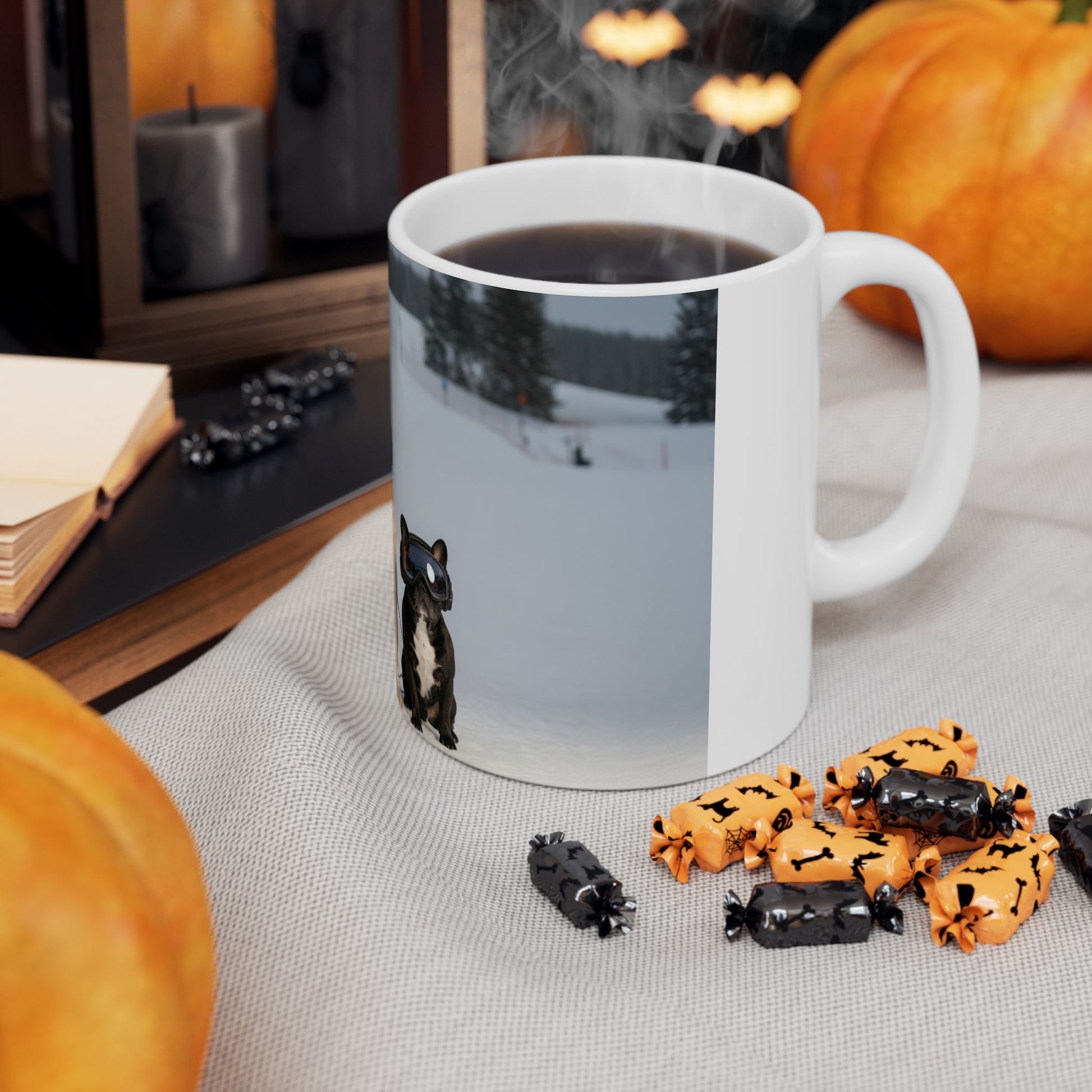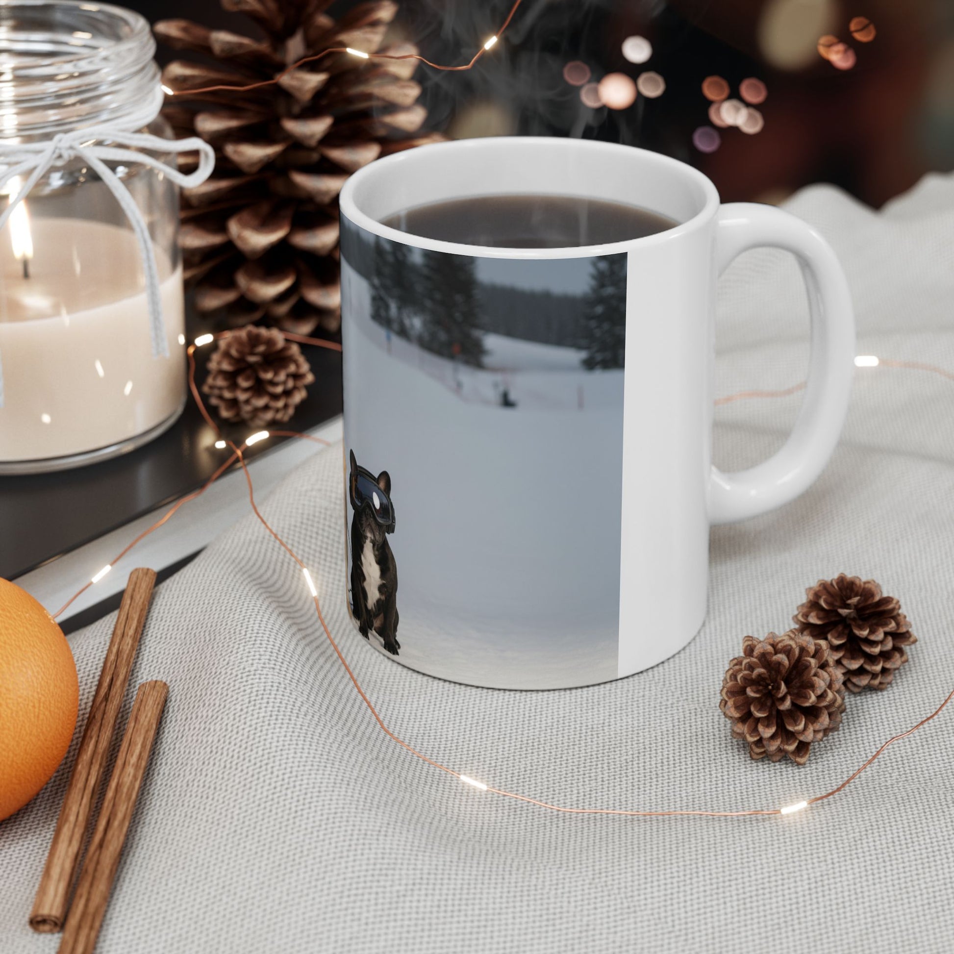 The crisp, high-resolution image stays vibrant thanks to durable ceramic and a smooth, glossy finish. A classic C-handle makes the mug comfortable to hold, while its microwave- and dishwasher-safe design ensures it’s as easy to use as it is charming. Whether it’s for early-morning coffee, après-ski hot chocolate, or gifting to fellow dog lovers, this mug adds a touch of snowy joy to any day.