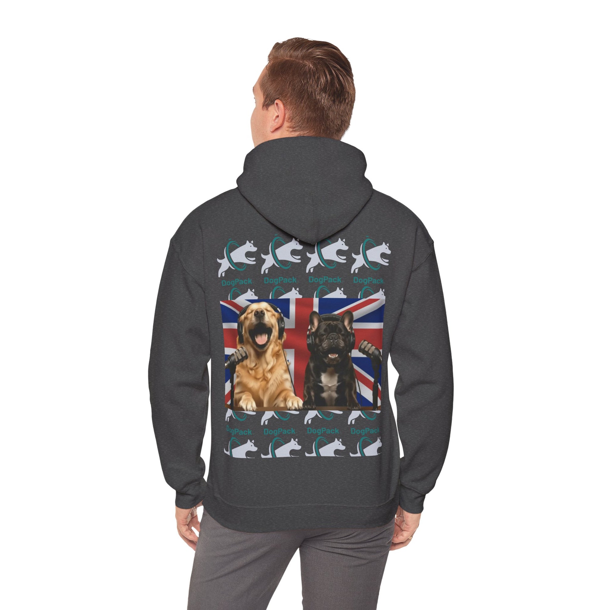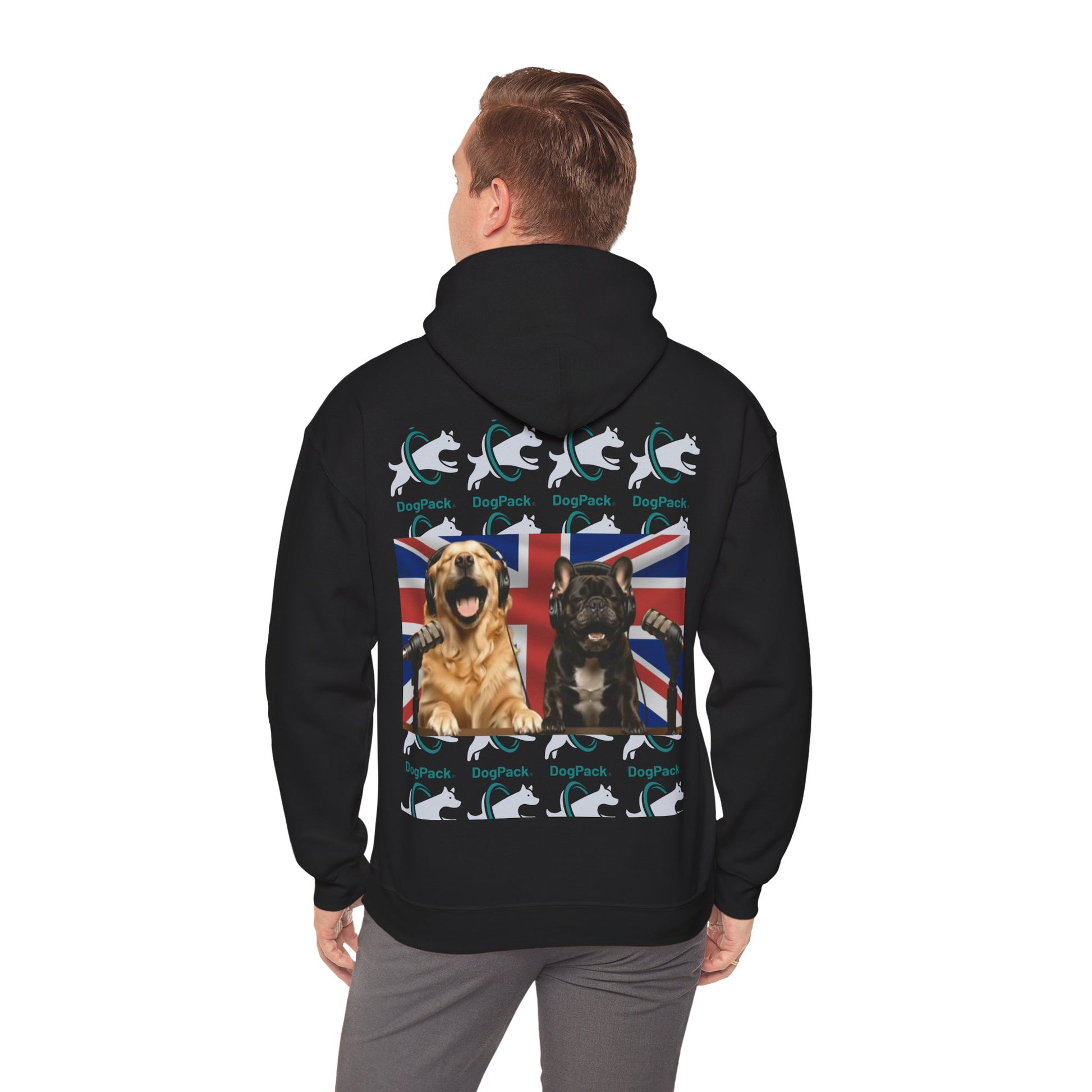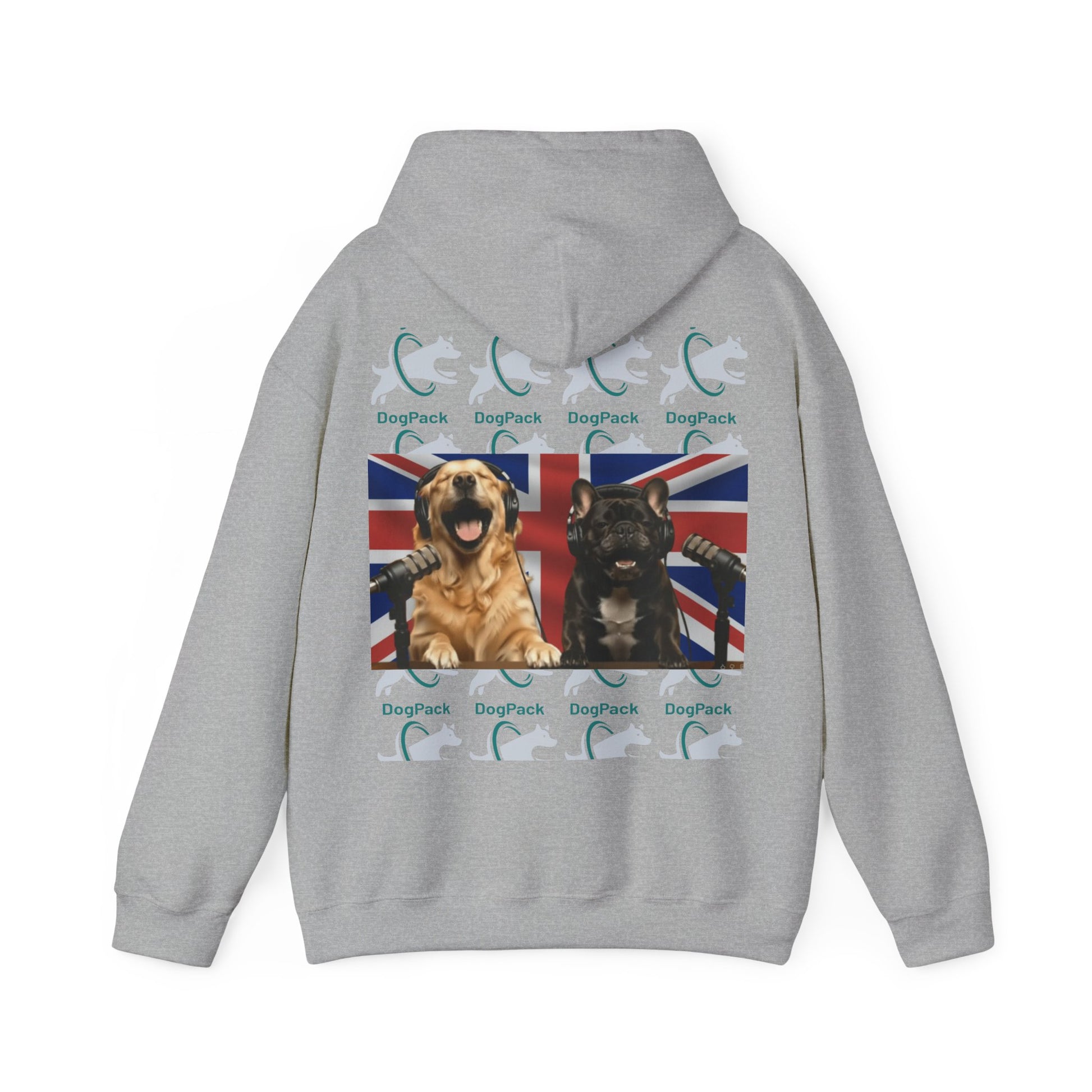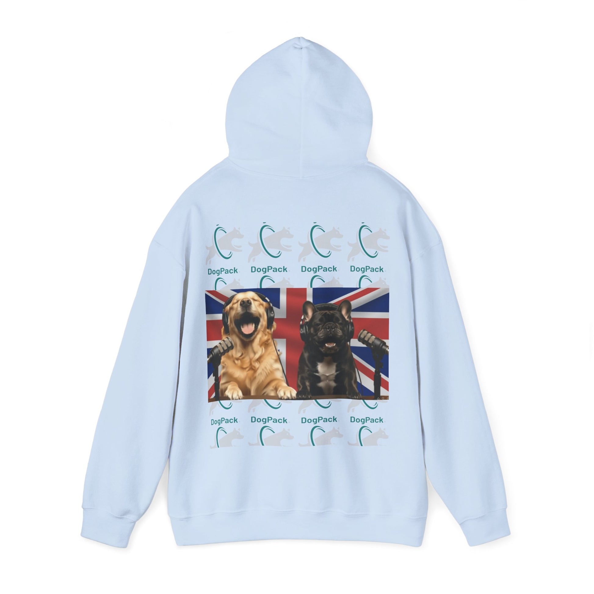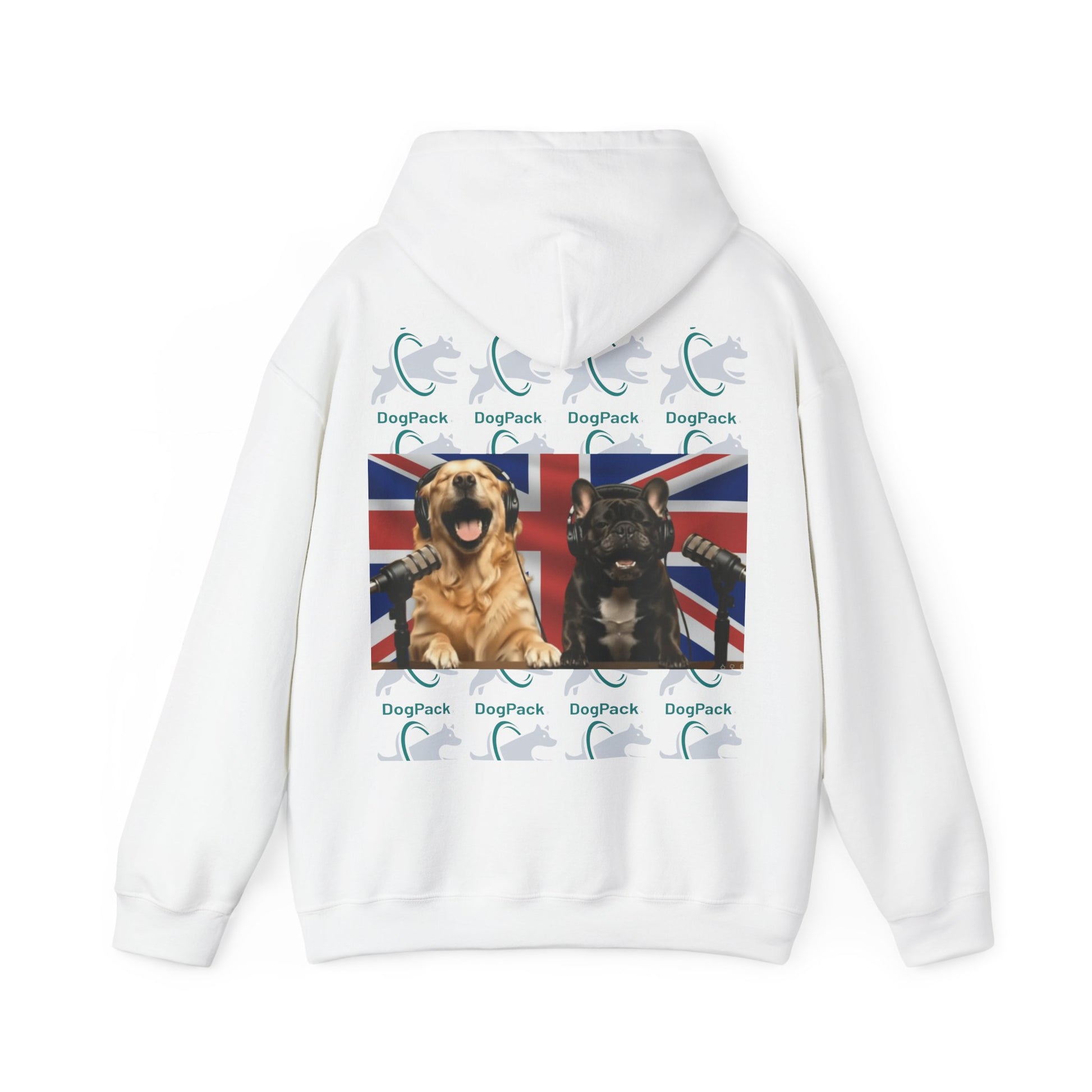 Goldie & Frenchie Repeating Pattern with UK Flag Hoodie — Front & Back Print - Ships from United Kingdom