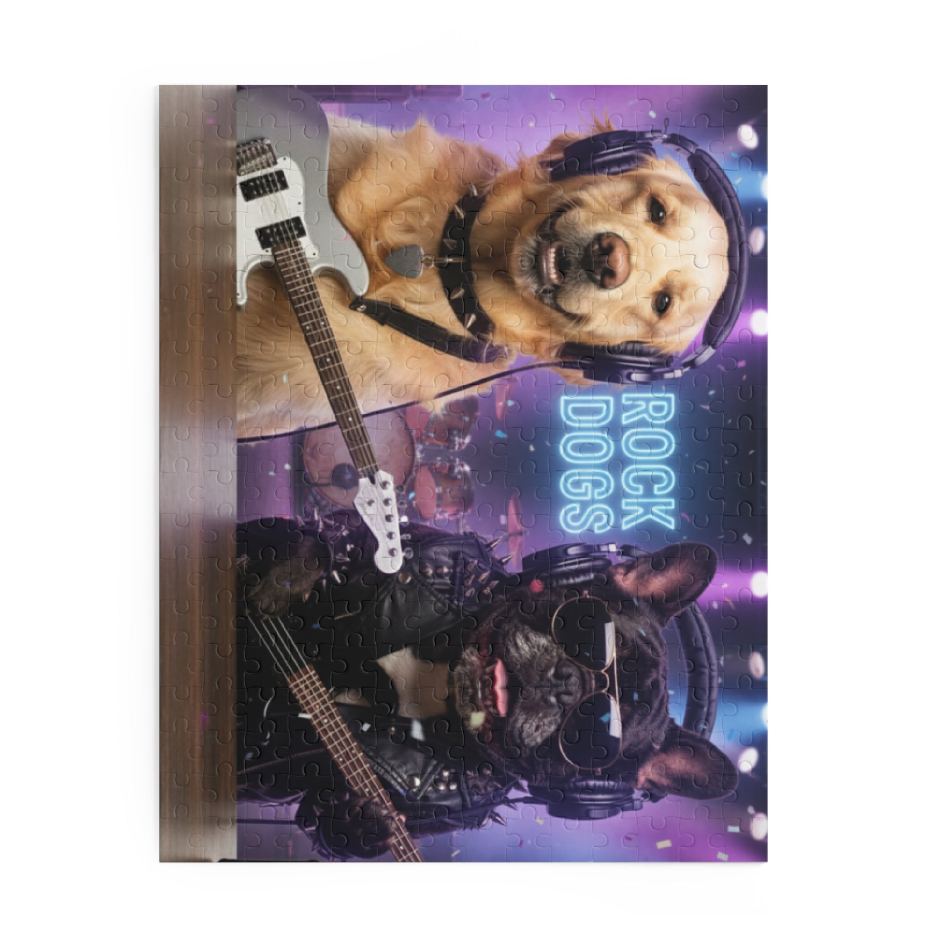 This premium puzzle transforms the neon-lit "Rock Dogs" stage into an experience you assemble piece by piece — two charismatic guitar-wielding pups under concert lights, headphones on, amps humming, and attitude turned all the way up. As the image slowly comes together, every detail shines: the reflective sunglasses, the metallic guitar hardware, the glimmer of the drum kit in the background. It’s a late-night-playlist sort of puzzle — one meant for relaxing builds, coffee refills, and that final satisfying click when the last piece falls into place.