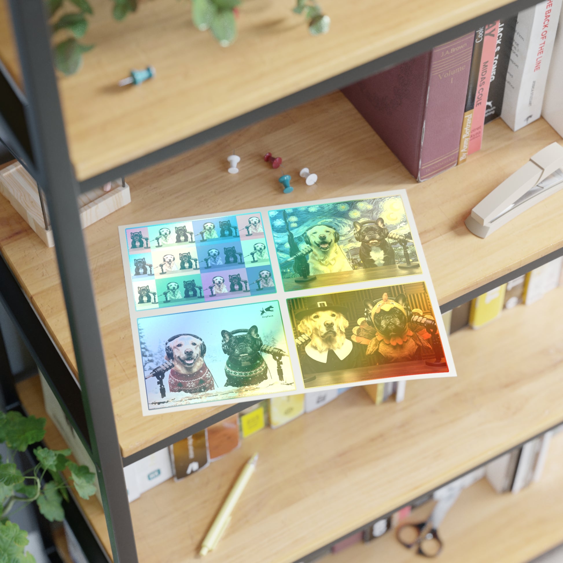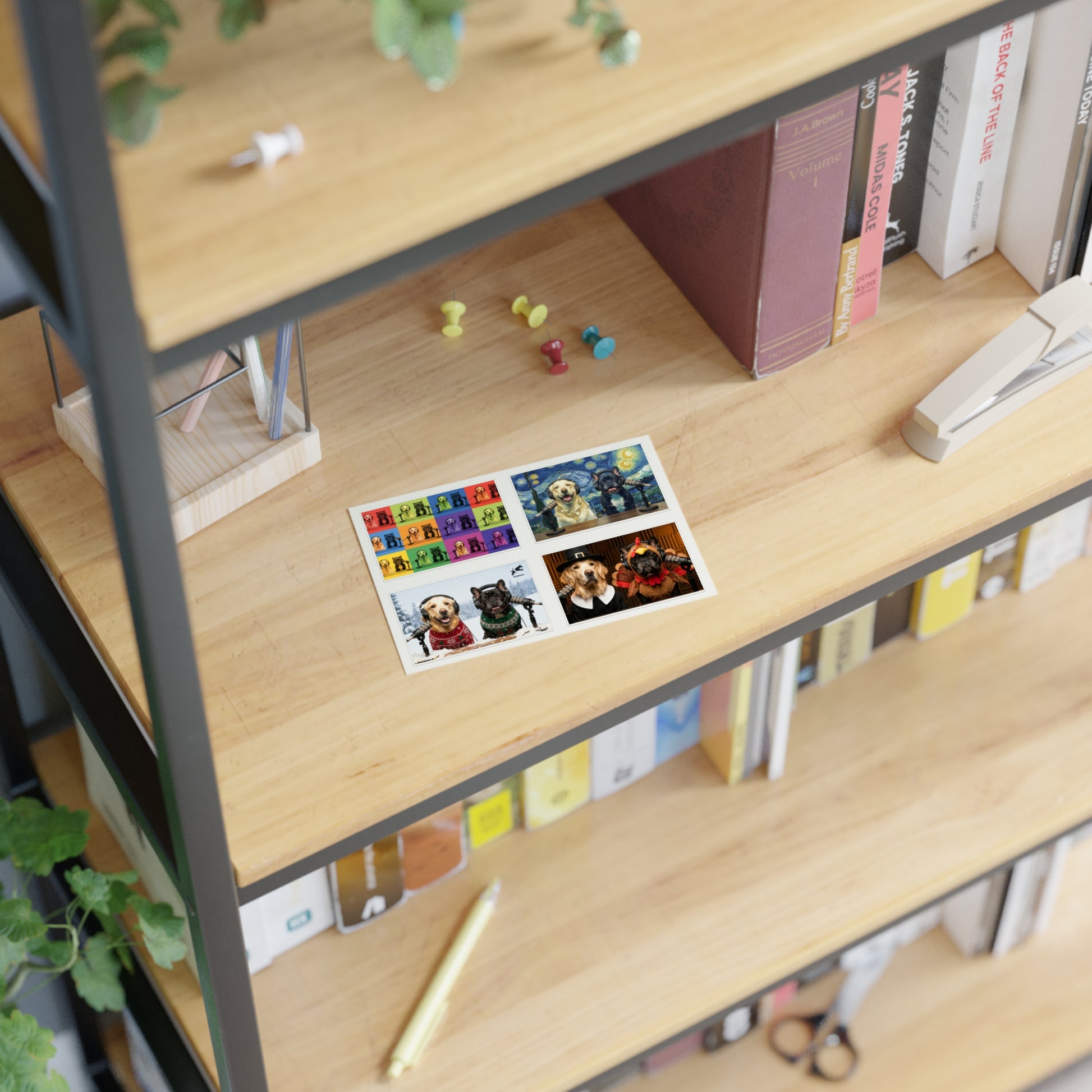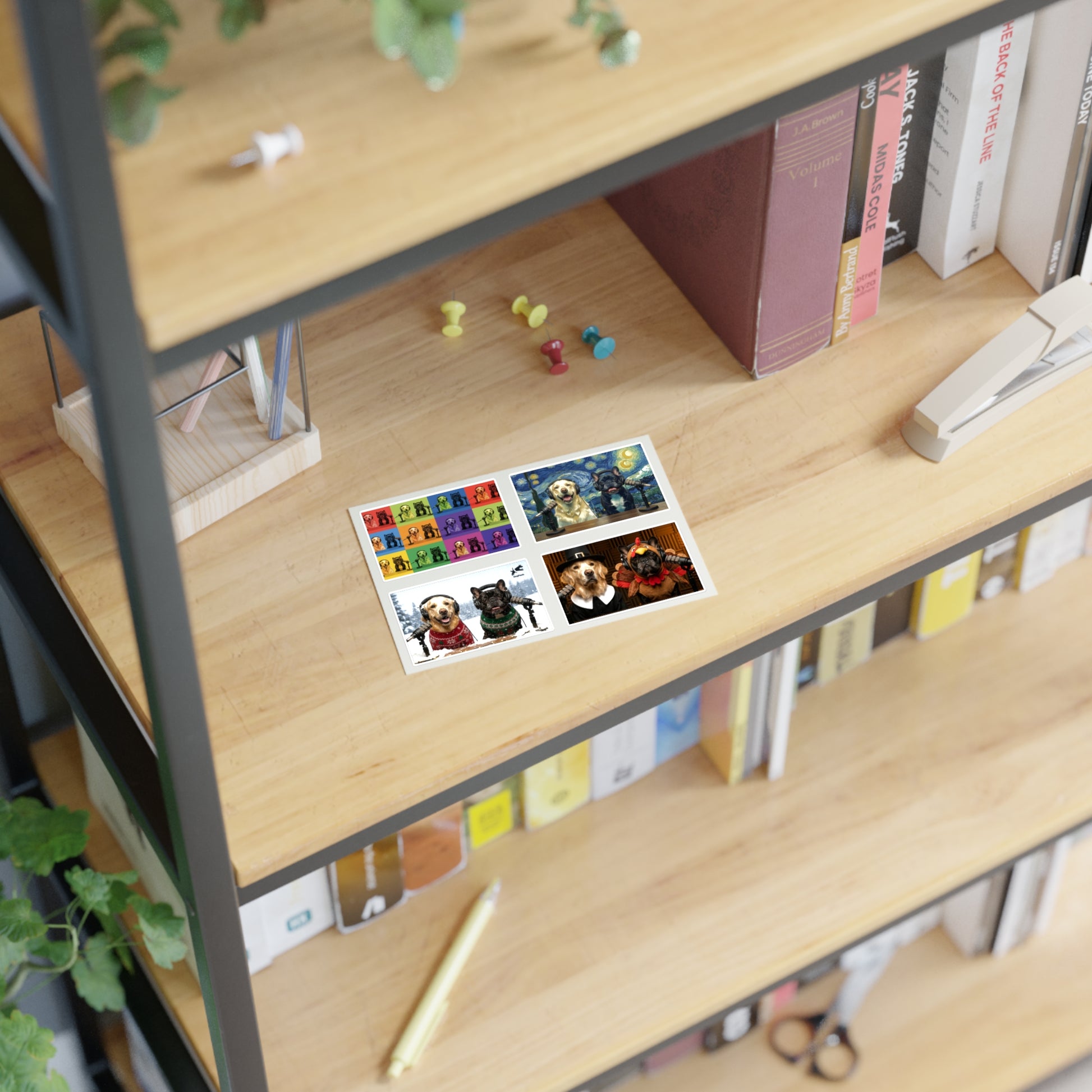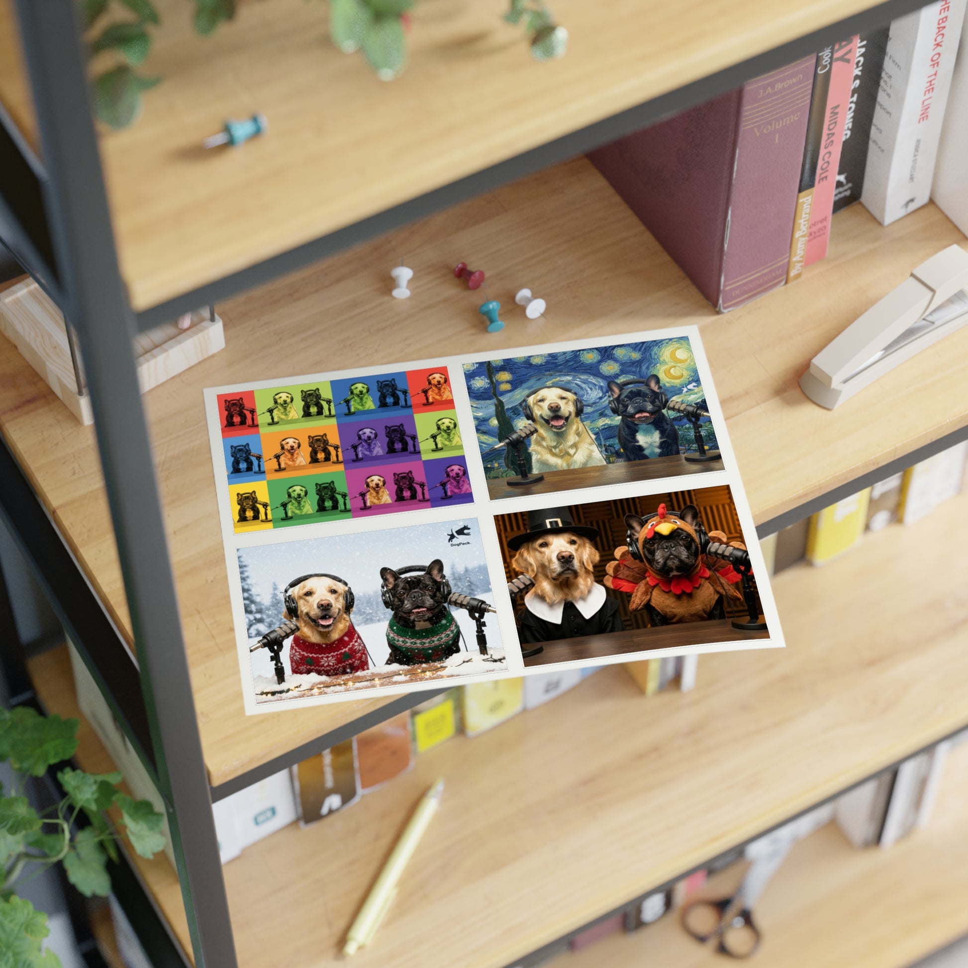 Goldie & Frenchie — Sheet of 4 Popular Stickers with backgrounds, Warhol, Van Gogh, Winter, Thanksgiving