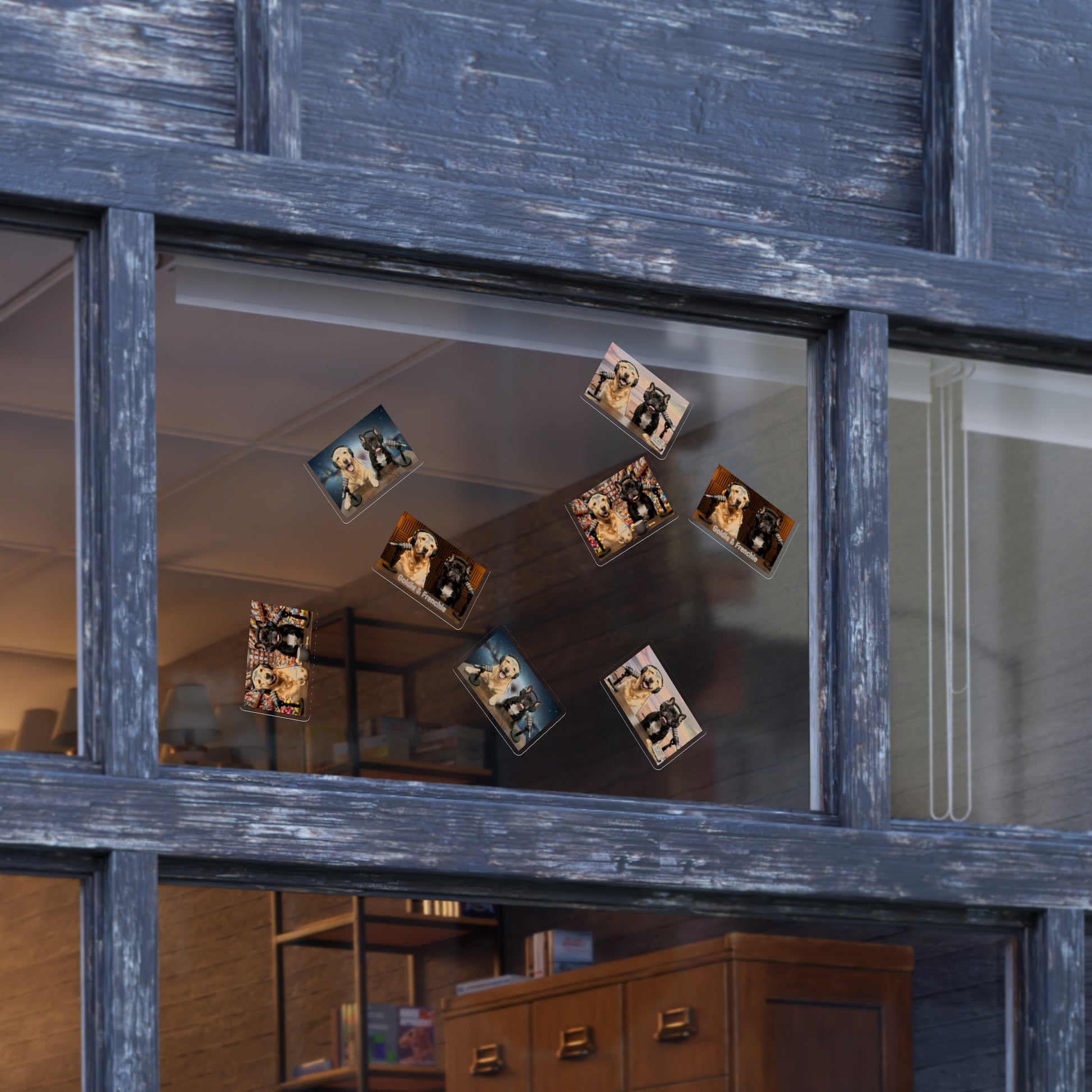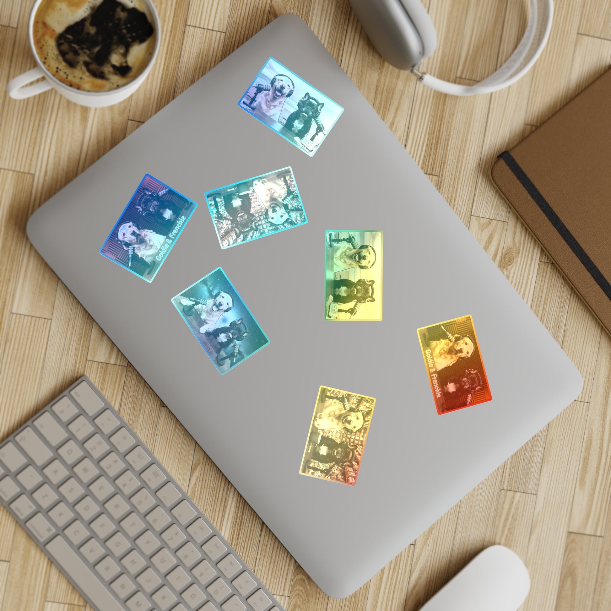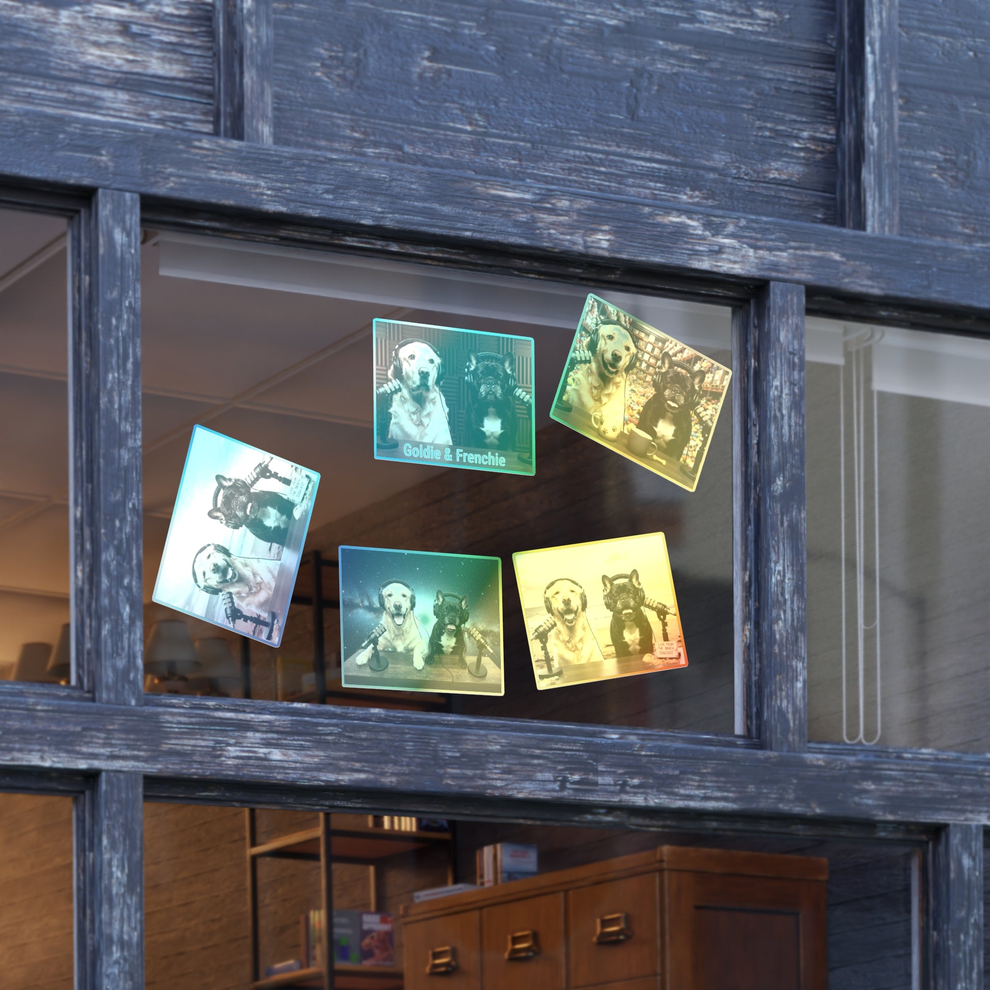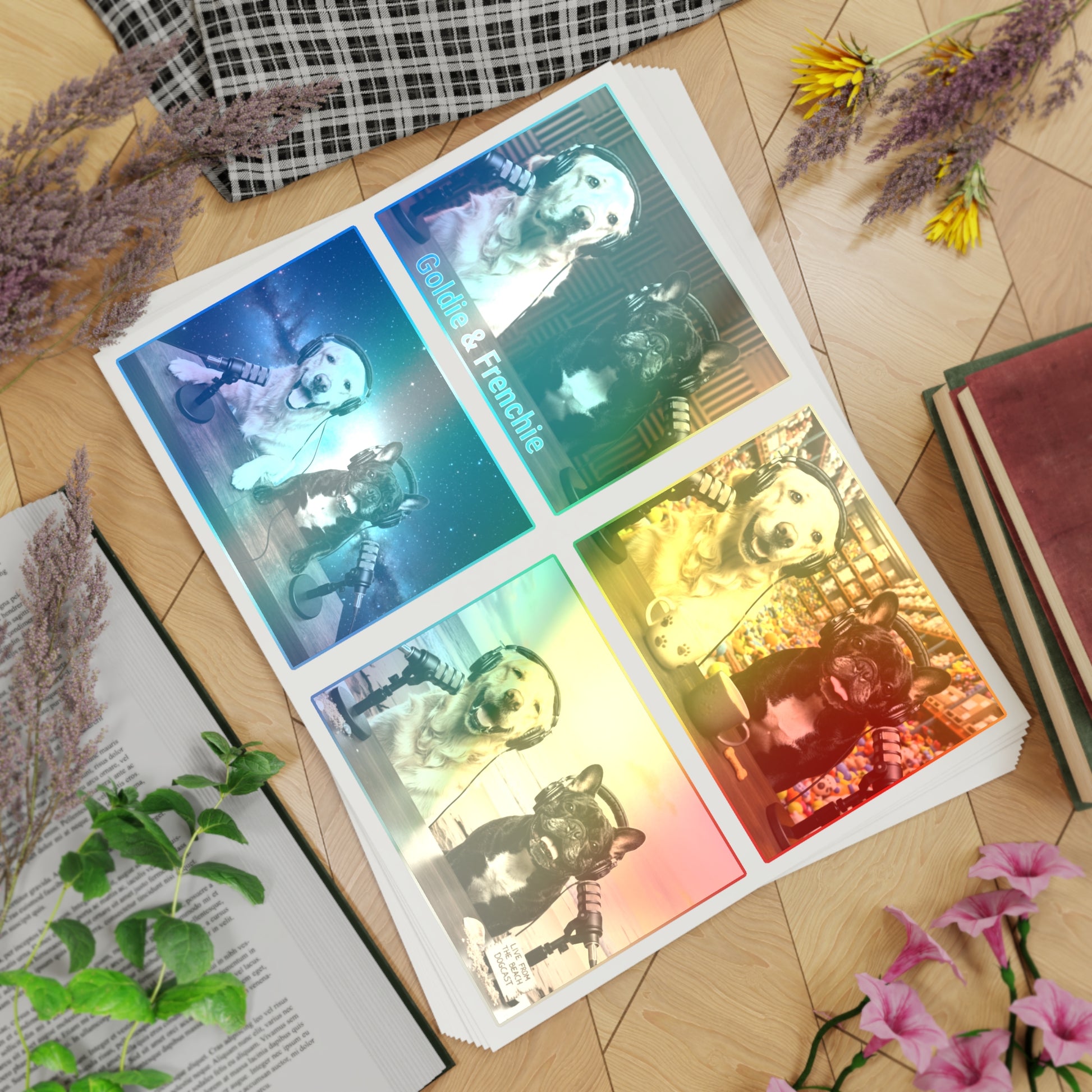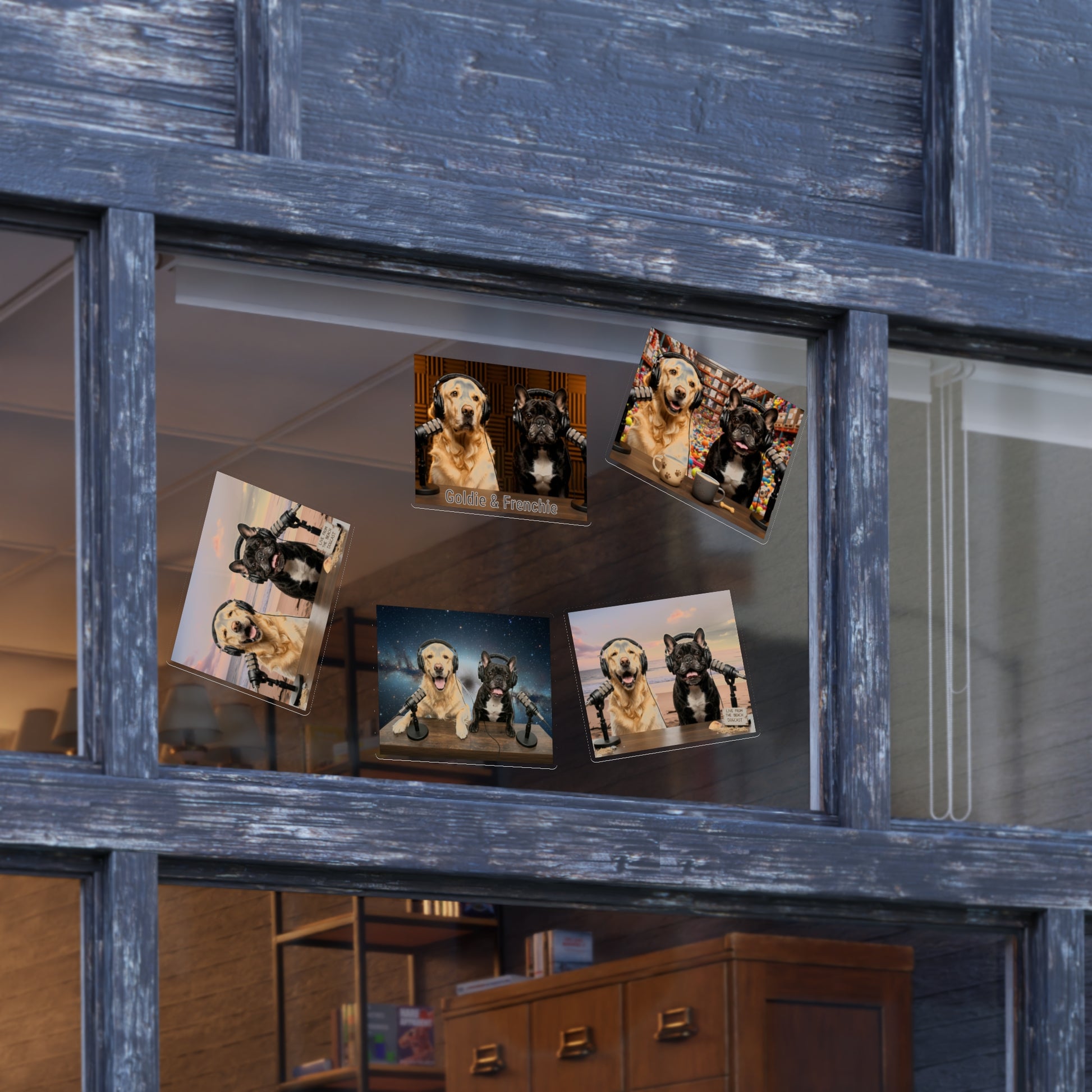 Add a pop of personality to your everyday essentials with these bright, playful sticker sheets. Each sheet includes four rectangular designs featuring your favorite two dogs, Goldie & Frenchie behind a podcast setup, captured in expressive, fun scenes that feel lively and full of character.