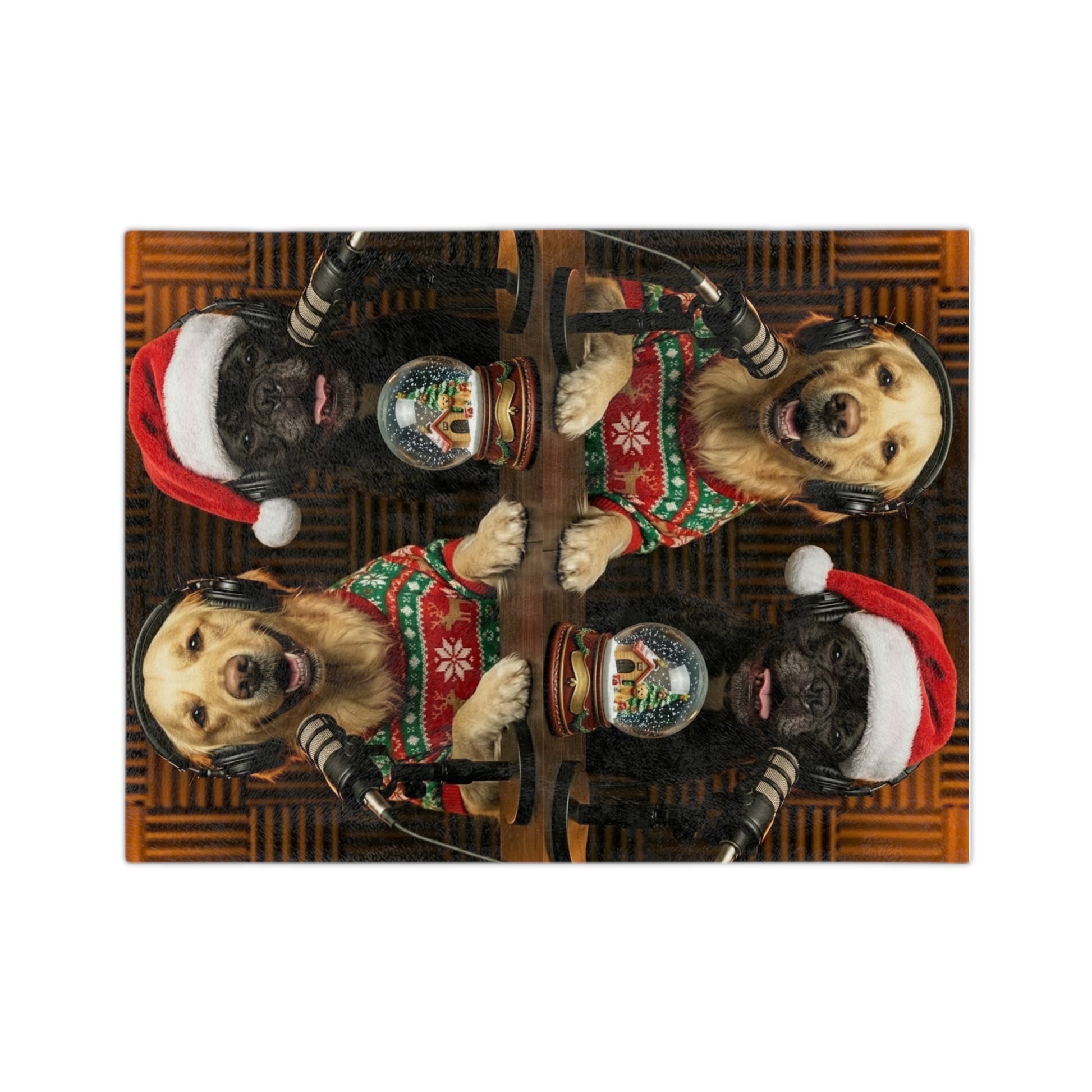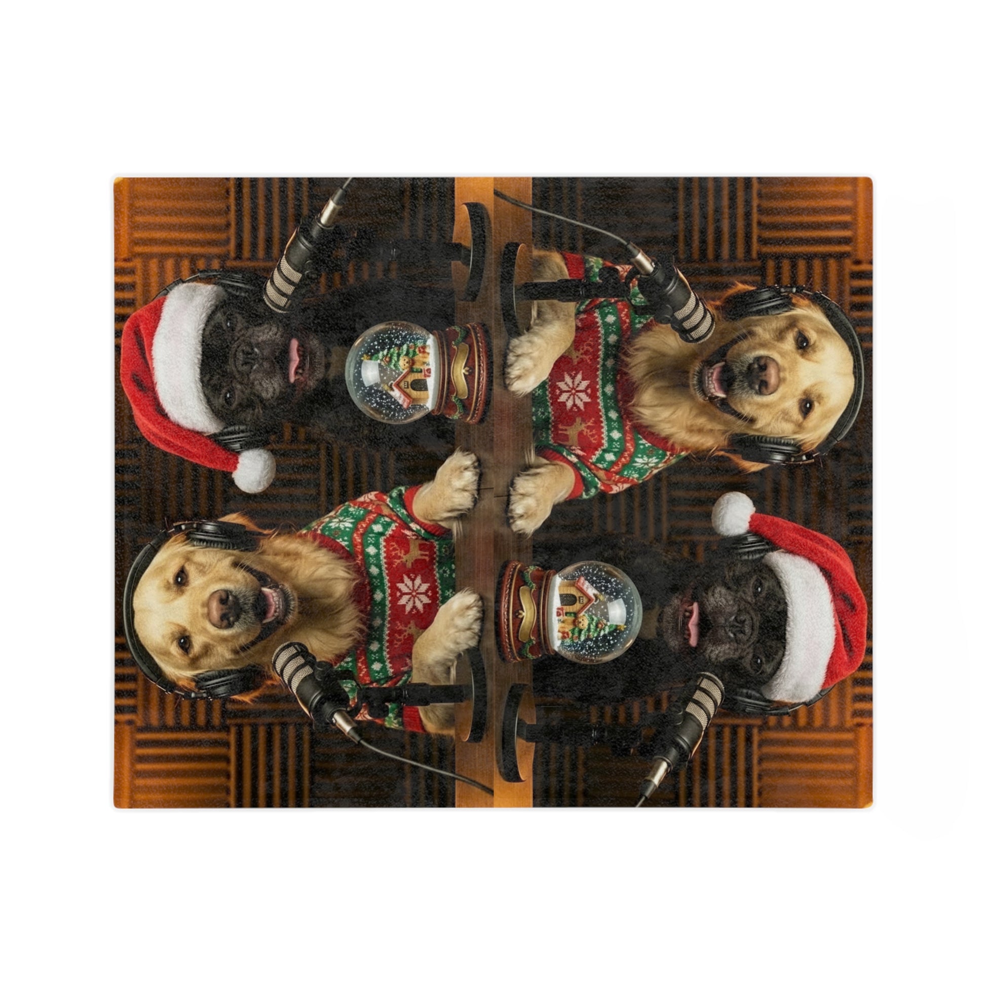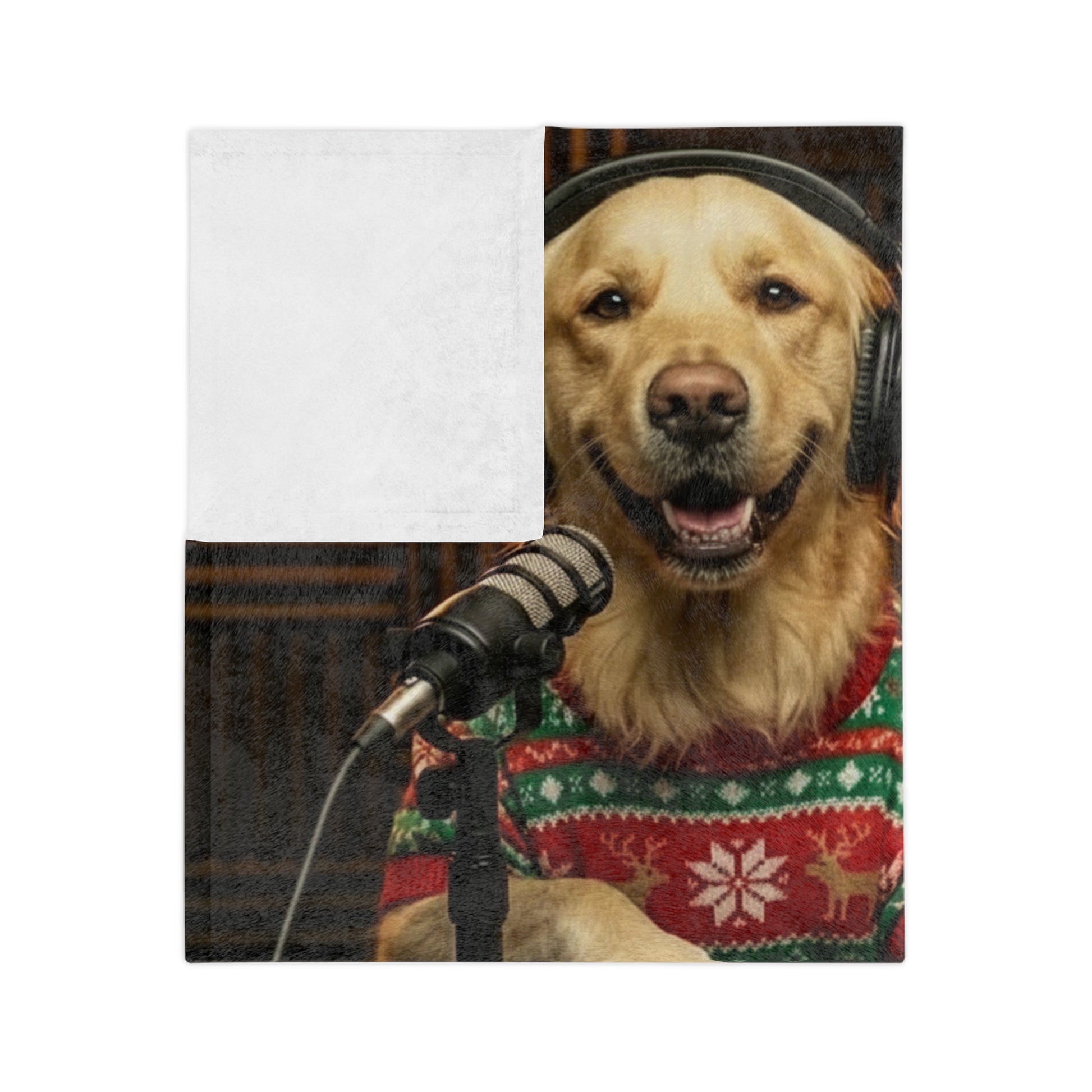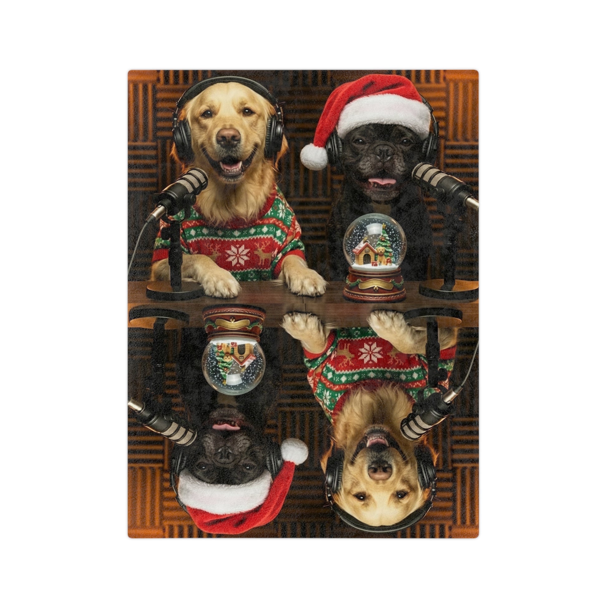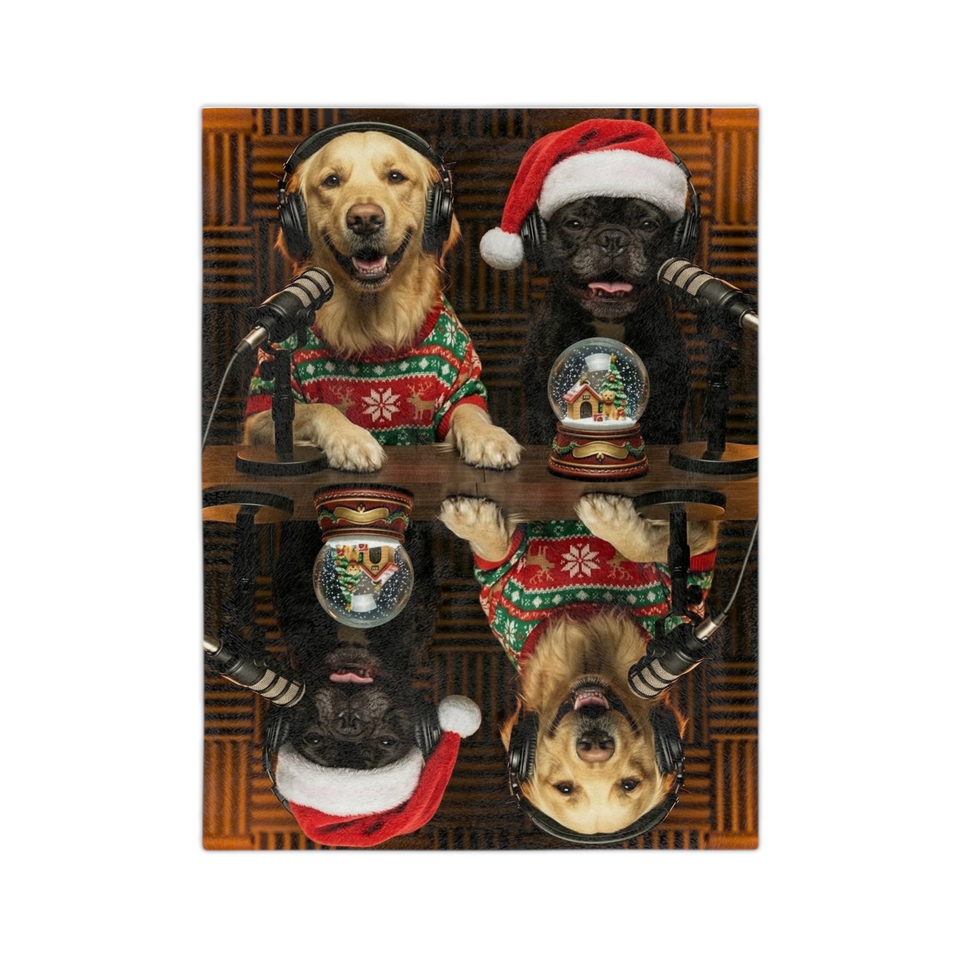 Wrap yourself in Christmas comfort with the official Goldie & Frenchie Holiday Blanket, a velvety-soft layer that brings the Pawdcast’s warm, festive energy straight into your home. Printed on ultra-plush velveteen microfiber, this one-sided design features the iconic duo in full holiday mode — Goldie in his cozy Christmas sweater and Frenchie in a Santa hat — recording a cheerful “special episode” behind their microphones, complete with a glowing snow globe between them. It’s the blanket you reach for when you want that familiar, heartwarming Goldie & Frenchie vibe beside the tree, during a winter movie marathon, or curled up with hot cocoa after a long day.