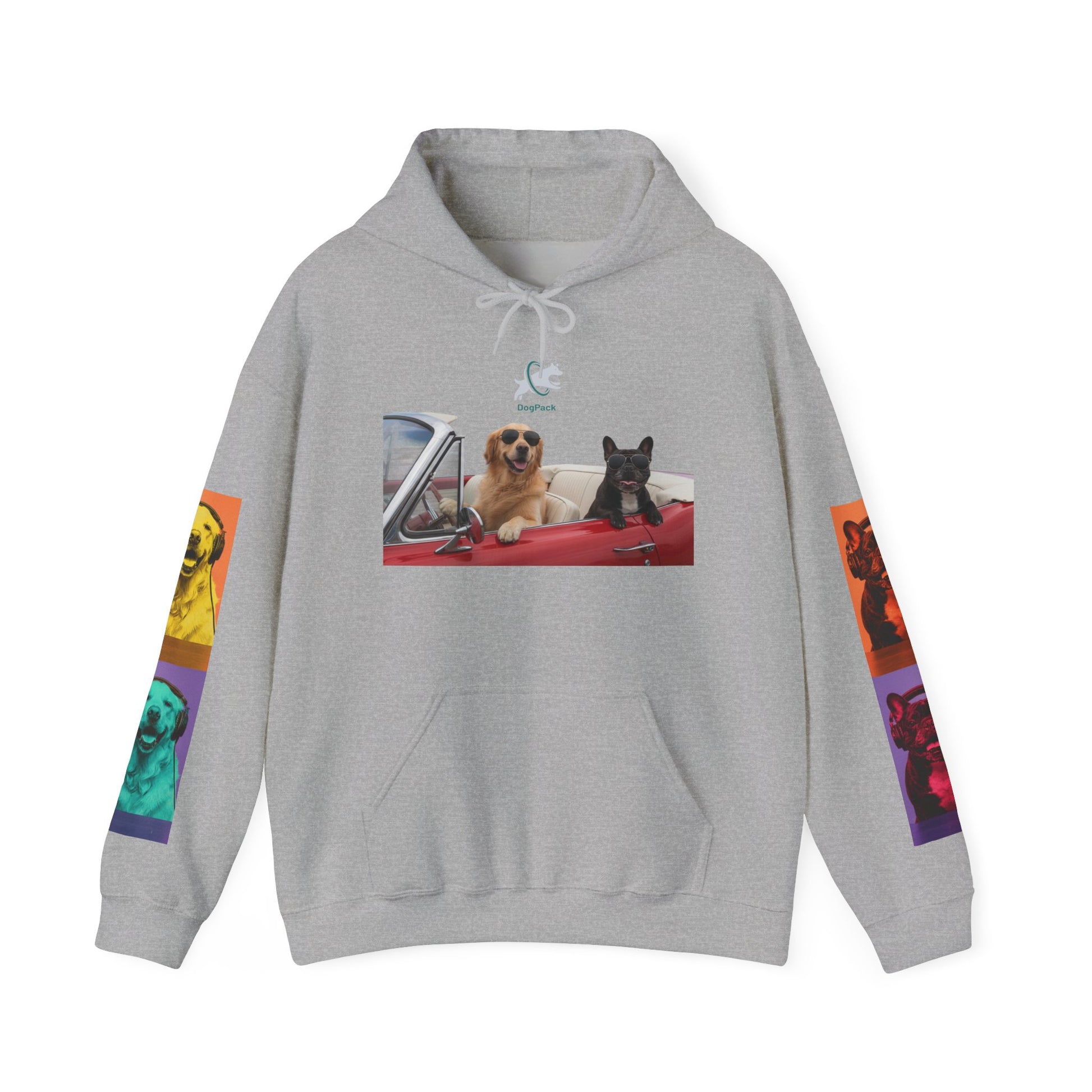 This is more than a hoodie — it’s a wearable piece of art. Goldie & Frenchie cruise in a classic red convertible across the chest, while bold pop-art panels run across both sleeves and the back like a vibrant gallery wall. The dogs that have made millions around the world laugh, cry, and understand their own dogs better are back, in the hoodie you love, intended for our biggest fans to enjoy.