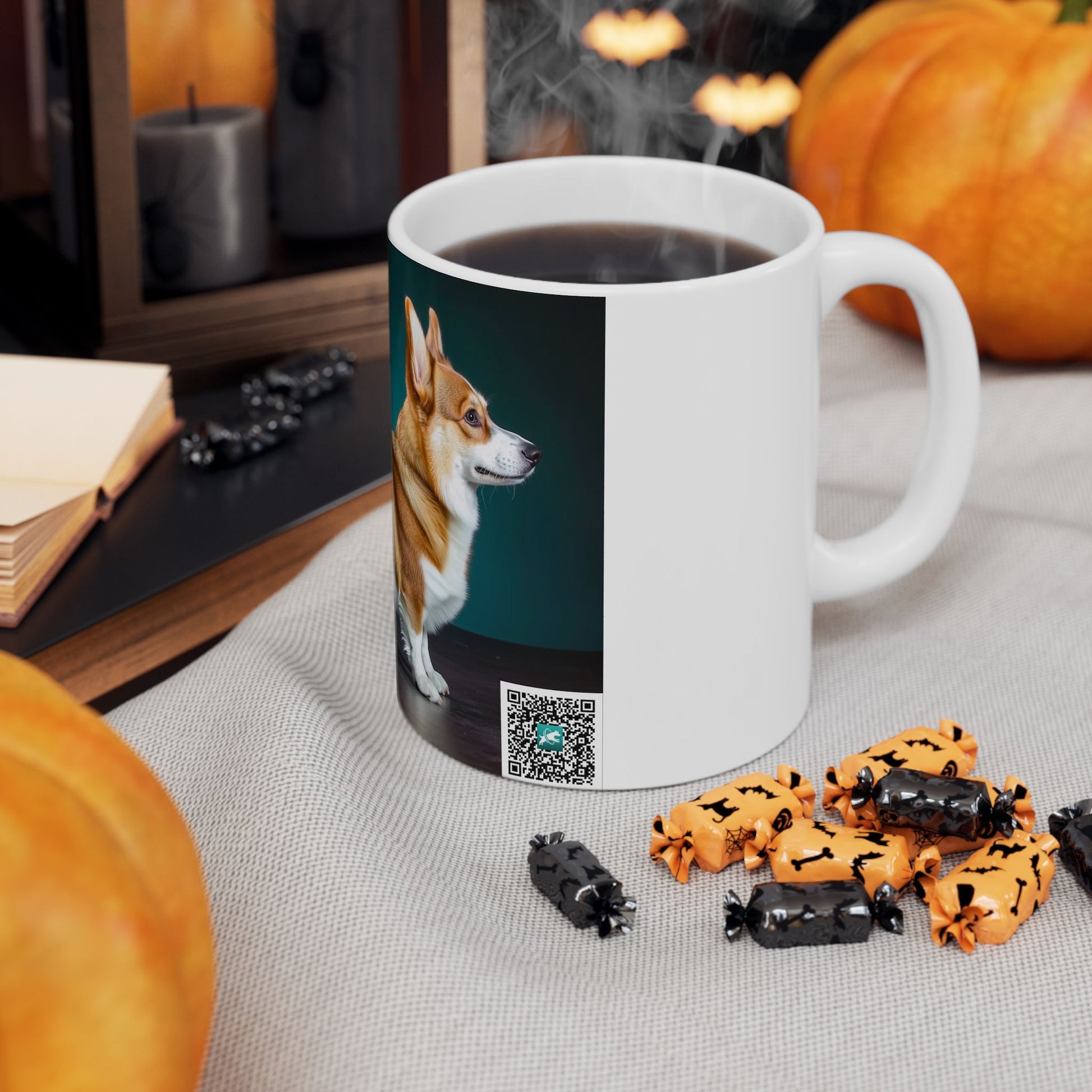 Start the day with a wag — this ceramic mug features the unmistakable silhouette of a Pembroke Welsh Corgi, beautifully printed in rich detail from nose to tail. The deep teal backdrop makes the corgi’s vibrant coat pop, while the glossy finish gives the design a clean, polished look. It’s microwave-friendly, dishwasher-safe, and built for everyday use, making it the perfect companion for morning brews, late-night tea, and everything in between. A simple pleasure for corgi lovers, collectors, and anyone who enjoys sipping with a smile.