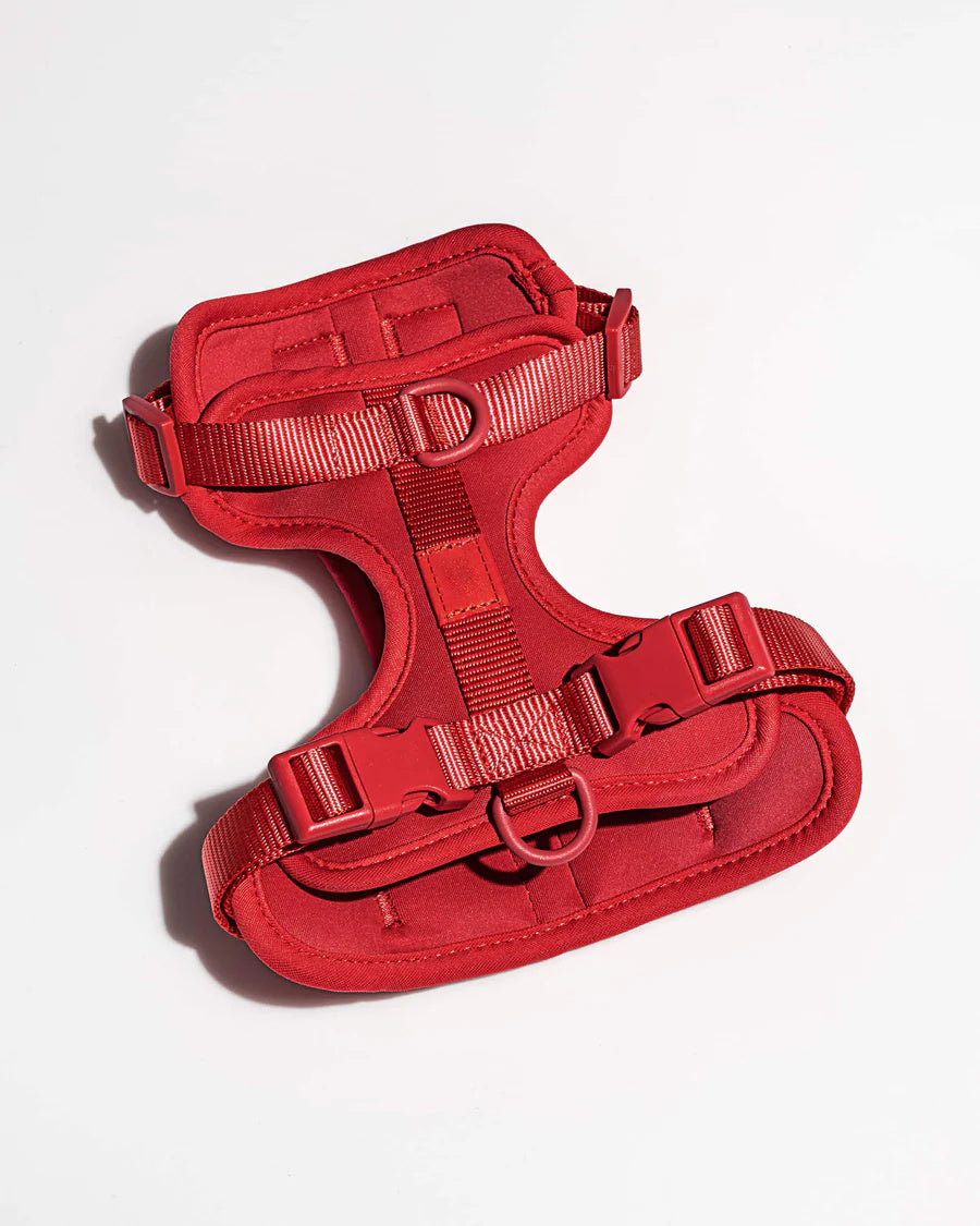 This lightweight harness combines comfort and style. Your dog will love the soft-padded interior, and you will love how easy it is to buckle them in and adjust the sizing. The red and blue colors are stunningly eye-grabbing, and you can wash this harness without worrying that the colors will fade!